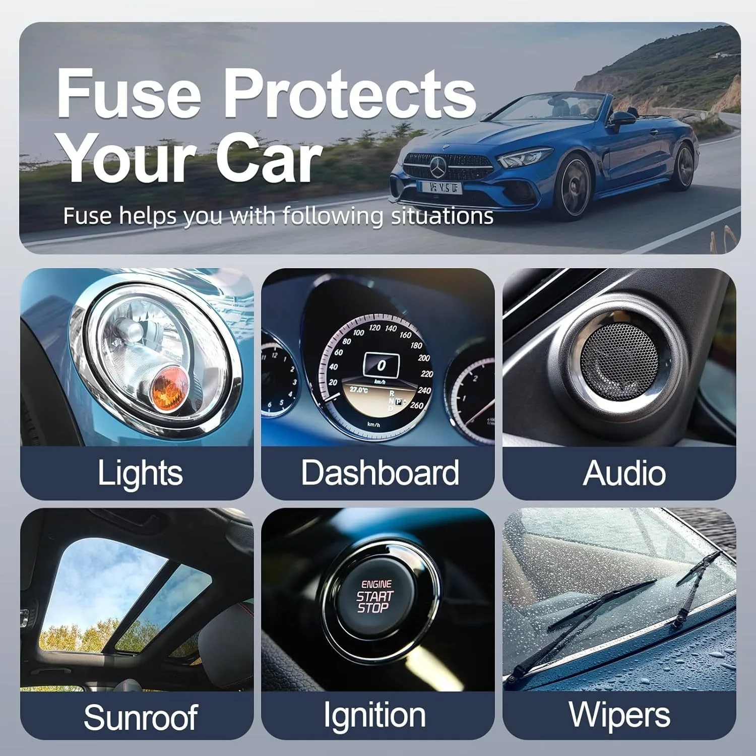 3. Wide application — The car fuse kit are suitable for cars,RV, truck, motorcycles, boats,marine,travel trailer.