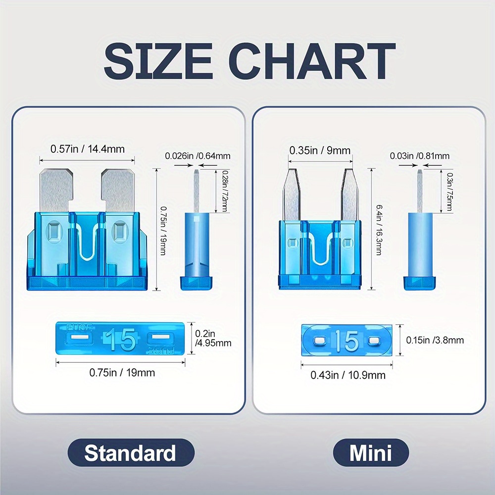 4. Easy to identify — The fusiles para carro of each current specification is distinguished by different colors, and the current specification number is marked on the top of each assorted fuses, which is easy to identify.