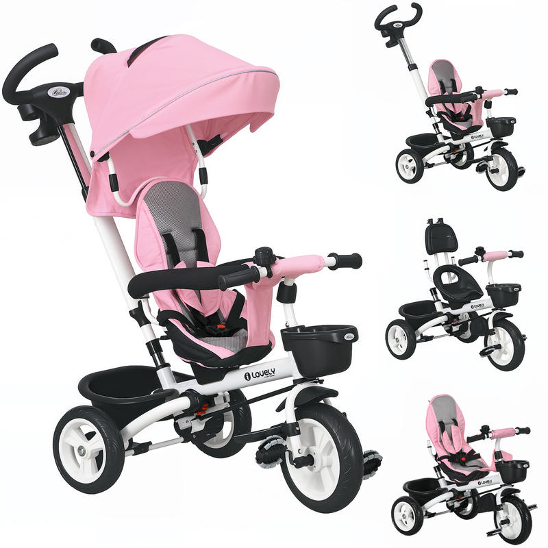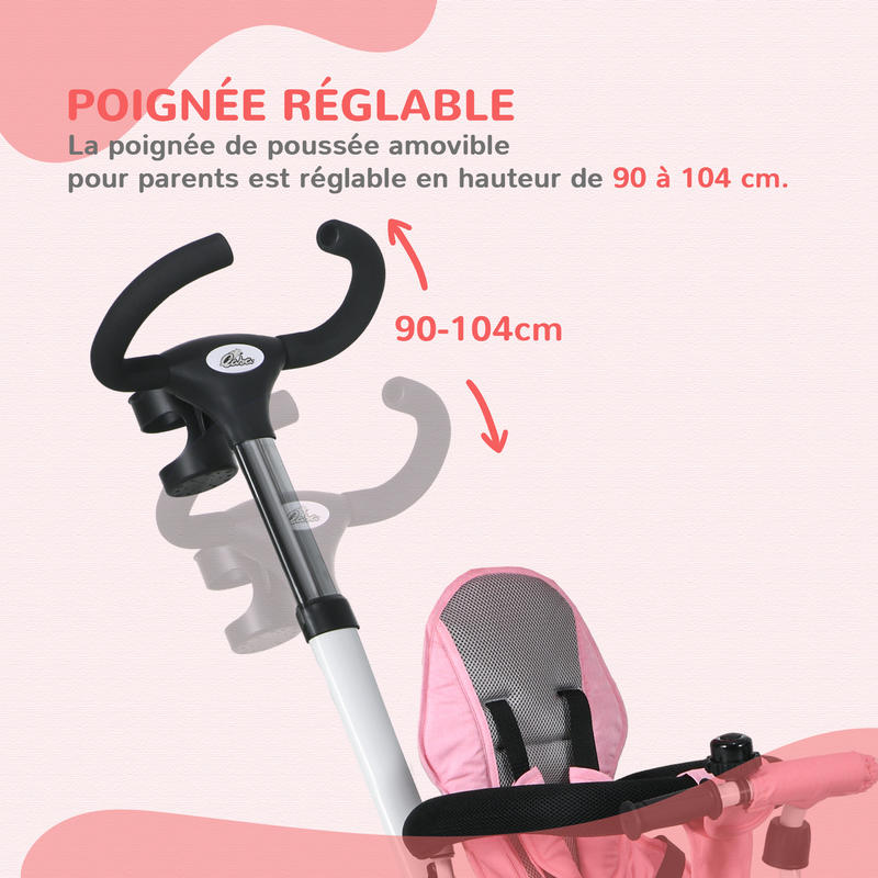 Evolutionaire driewieler 6 in 1, opvouwbare driewieler, stuur, omkeerbaar zitje, 112X50X104Cm, roze