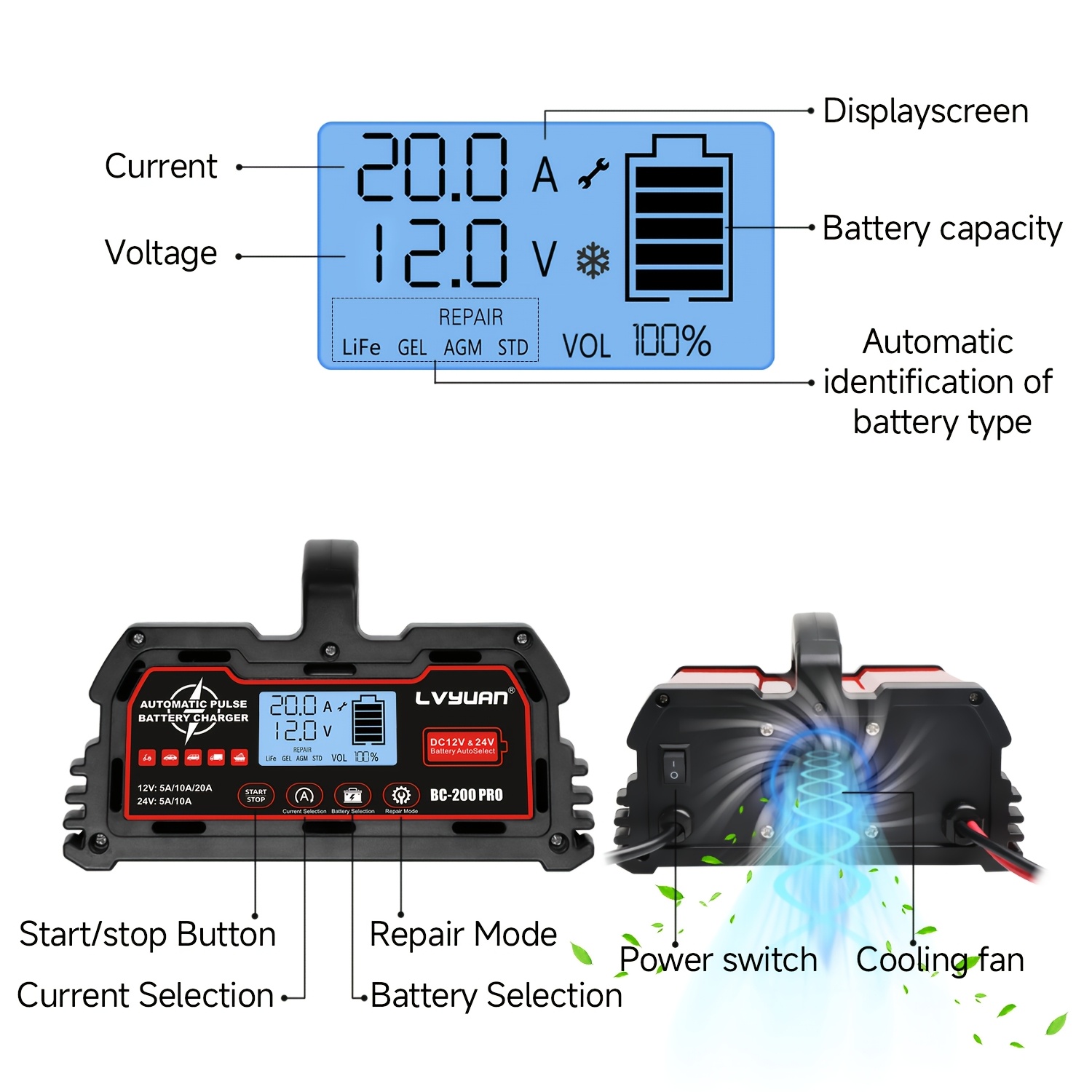 20A 12V/24V Zware Automatische Acculader met LCD-scherm & Overlaadbeveiliging - 12V LiFePO4/Loodzuur Slimme Lader, 220-240V AC Ingang, 12V/24V DC Uitgang voor Auto's, Motorfietsen, Grasmaaiers, Boten, Campers, Zonnestelsels - Druppelonderhoudslader met Overlaadbeveiliging, Automatische Modus, 12V/24V Loodzuur & LiFePO4 Compatibel, Vaste of Insteekvoeding, Accu met Lader, Accupakket, Acculader met Accu's, Draagbare Lader Powerbank20A 12V/24V Zware Automatische Acculader met LCD-scherm & Overlaadbeveiliging - 12V LiFePO4/Loodzuur Slimme Lader, 220-240V AC Ingang, 12V/24V DC Uitgang voor Auto's, Motorfietsen, Grasmaaiers, Boten, Campers, Zonnestelsels - Druppelonderhoudslader met Overlaadbeveiliging, Automatische Modus, 12V/24V Loodzuur & LiFePO4 Compatibel, Vaste of Insteekvoeding, Accu met Lader, Accupakket, Acculader met Accu's, Draagbare Lader Powerbank20A 12V/24V Zware Automatische Acculader met LCD-scherm & Overlaadbeveiliging - 12V LiFePO4/Loodzuur Slimme Lader, 220-240V AC Ingang, 12V/24V DC Uitgang voor Auto's, Motorfietsen, Grasmaaiers, Boten, Campers, Zonnestelsels - Druppelonderhoudslader met Overlaadbeveiliging, Automatische Modus, 12V/24V Loodzuur & LiFePO4 Compatibel, Vaste of Insteekvoeding, Accu met Lader, Accupakket, Acculader met Accu's, Draagbare Lader Powerbank20A 12V/24V Zware Automatische Acculader met LCD-scherm & Overlaadbeveiliging - 12V LiFePO4/Loodzuur Slimme Lader, 220-240V AC Ingang, 12V/24V DC Uitgang voor Auto's, Motorfietsen, Grasmaaiers, Boten, Campers, Zonnestelsels - Druppelonderhoudslader met Overlaadbeveiliging, Automatische Modus, 12V/24V Loodzuur & LiFePO4 Compatibel, Vaste of Insteekvoeding, Accu met Lader, Accupakket, Acculader met Accu's, Draagbare Lader Powerbank20A 12V/24V Zware Automatische Acculader met LCD-scherm & Overlaadbeveiliging - 12V LiFePO4/Loodzuur Slimme Lader, 220-240V AC Ingang, 12V/24V DC Uitgang voor Auto's, Motorfietsen, Grasmaaiers, Boten, Campers, Zonnestelsels - Druppelonderhoudslader met Overlaadbeveiliging, Automatische Modus, 12V/24V Loodzuur & LiFePO4 Compatibel, Vaste of Insteekvoeding, Accu met Lader, Accupakket, Acculader met Accu's, Draagbare Lader Powerbank20A 12V/24V Zware Automatische Acculader met LCD-scherm & Overlaadbeveiliging - 12V LiFePO4/Loodzuur Slimme Lader, 220-240V AC Ingang, 12V/24V DC Uitgang voor Auto's, Motorfietsen, Grasmaaiers, Boten, Campers, Zonnestelsels - Druppelonderhoudslader met Overlaadbeveiliging, Automatische Modus, 12V/24V Loodzuur & LiFePO4 Compatibel, Vaste of Insteekvoeding, Accu met Lader, Accupakket, Acculader met Accu's, Draagbare Lader Powerbank20A 12V/24V Zware Automatische Acculader met LCD-scherm & Overlaadbeveiliging - 12V LiFePO4/Loodzuur Slimme Lader, 220-240V AC Ingang, 12V/24V DC Uitgang voor Auto's, Motorfietsen, Grasmaaiers, Boten, Campers, Zonnestelsels - Druppelonderhoudslader met Overlaadbeveiliging, Automatische Modus, 12V/24V Loodzuur & LiFePO4 Compatibel, Vaste of Insteekvoeding, Accu met Lader, Accupakket, Acculader met Accu's, Draagbare Lader Powerbank