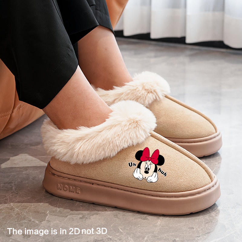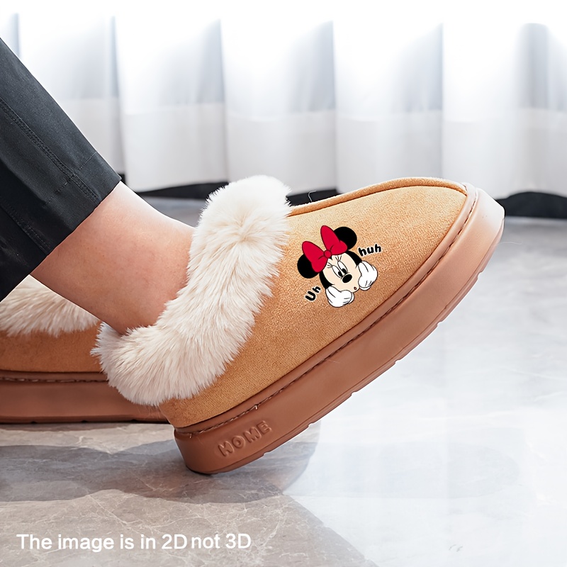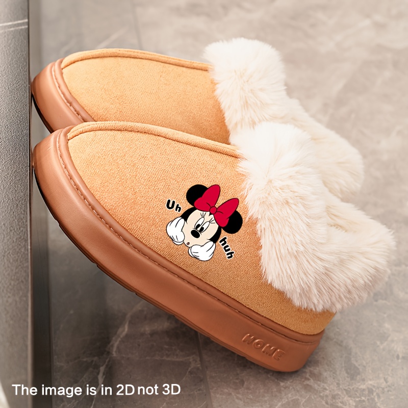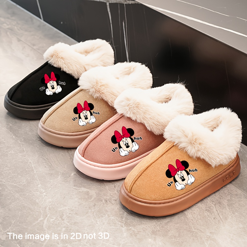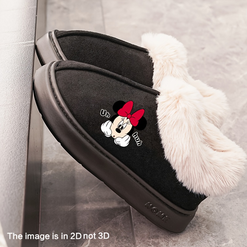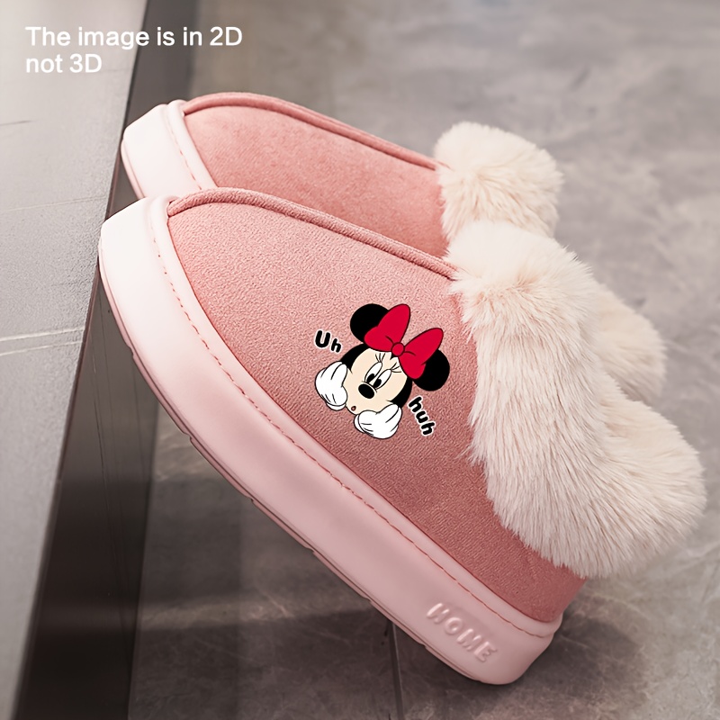 Disney Unisex Winter Fleece-Lined Slippers – Ultra Plush Anti-Slip EVA Sole Fashion House Shoes (2D Polka Dot Bow Print) Birthday/Christmas/Halloween