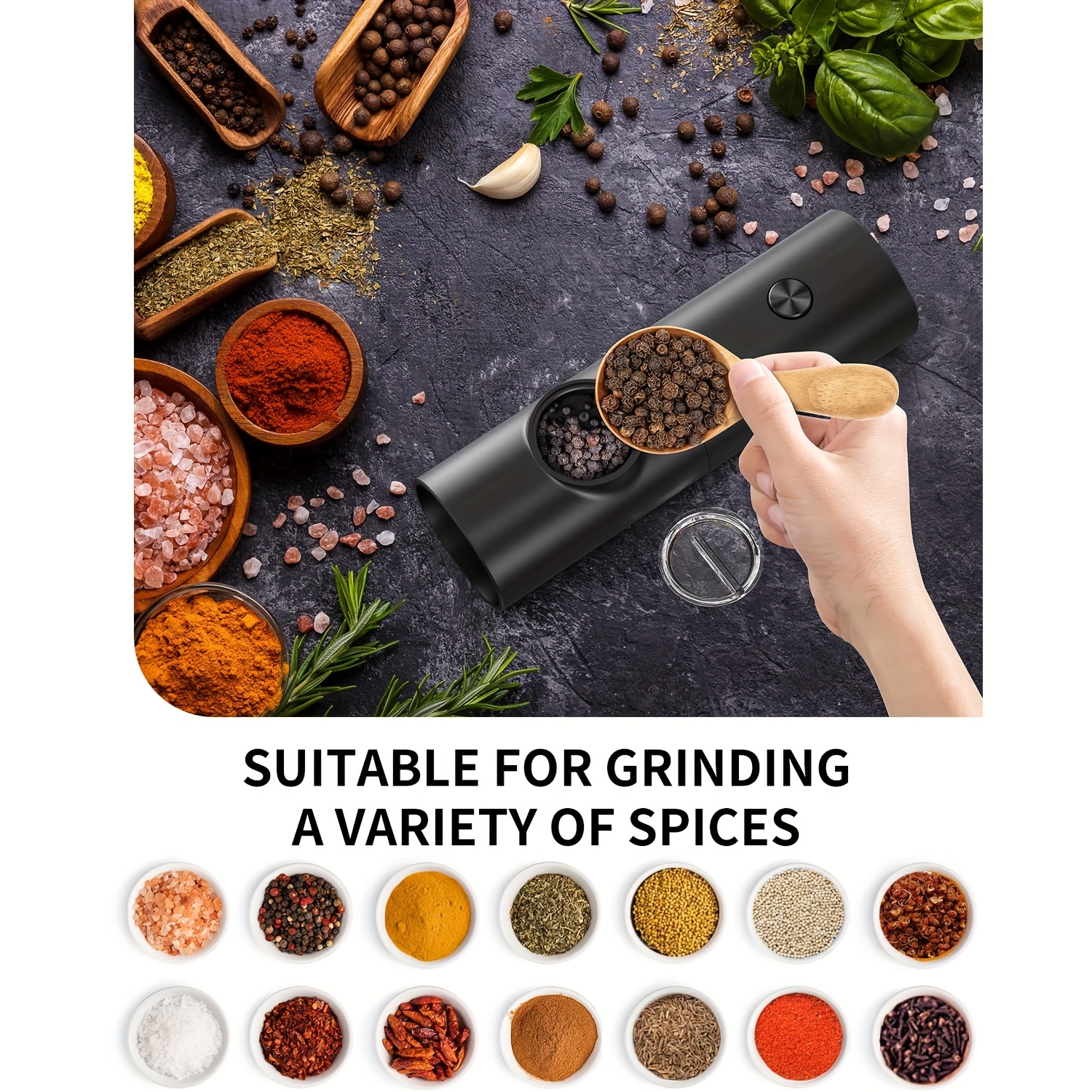 Elektrische zout- en pepermolen, batterijgevoed, handig (batterijen niet inbegrepen), dual-compartment ontwerp met basis, praktische witte LED-licht, grof en fijn instelbaar, één-klik-bewerking, zwarte duurzame