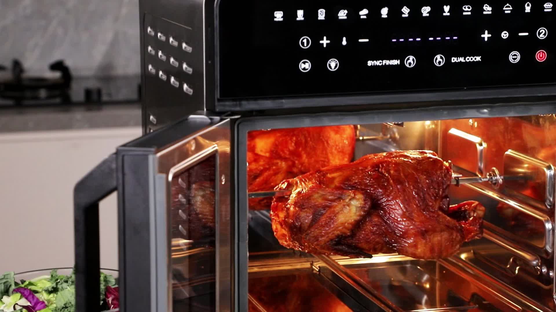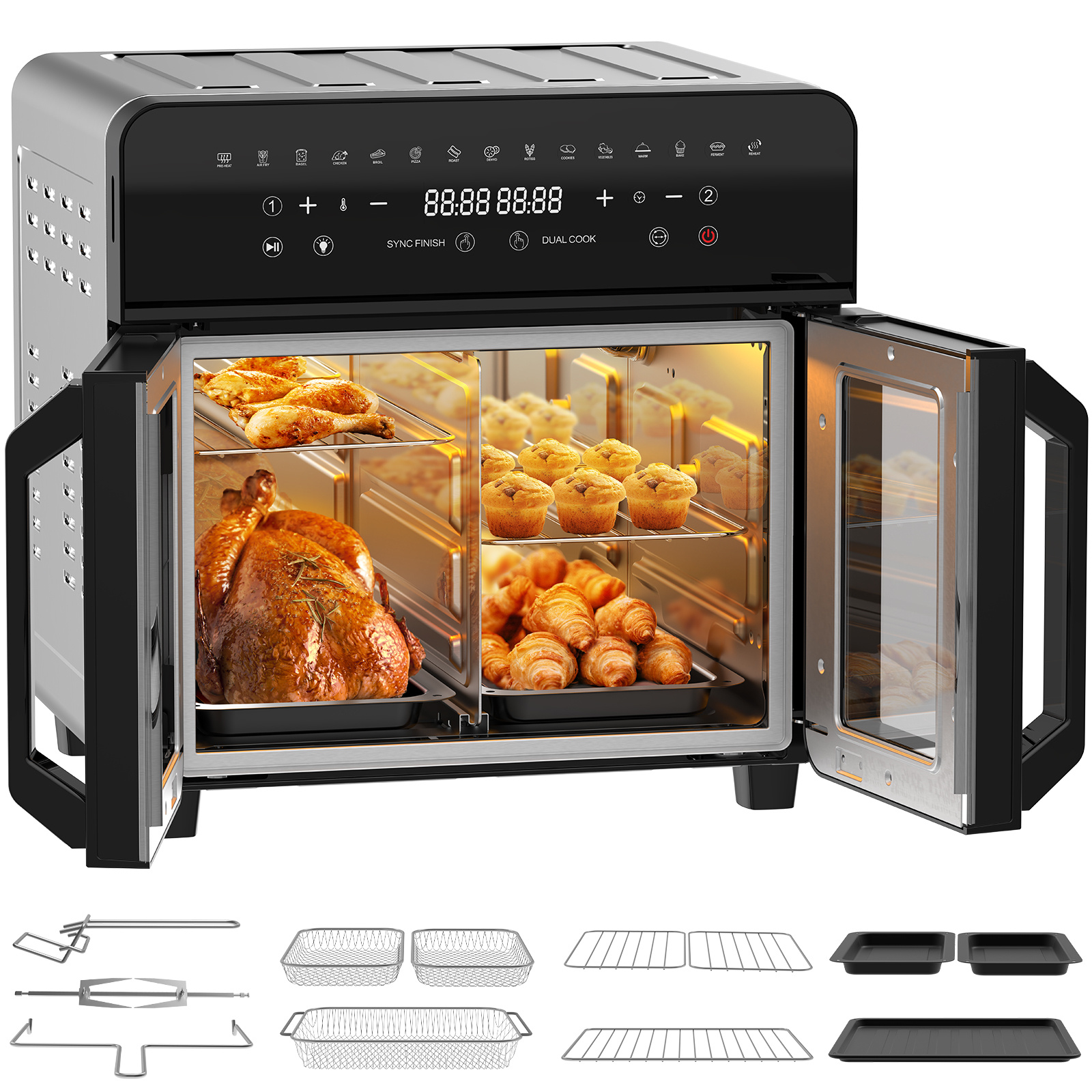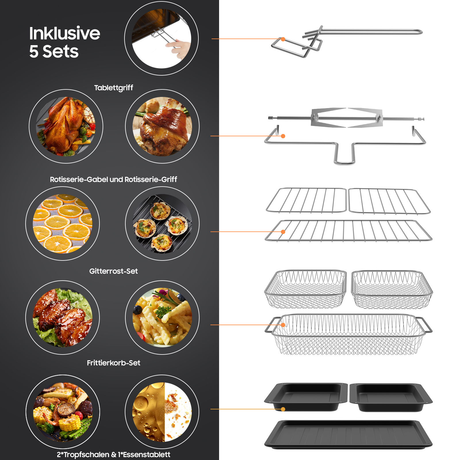 Hot Air Oven met dubbele kamer, 15 programma’s, 2200W, 12 accessoires, verwijderbare scheider voor kookruimte, 50-200°C