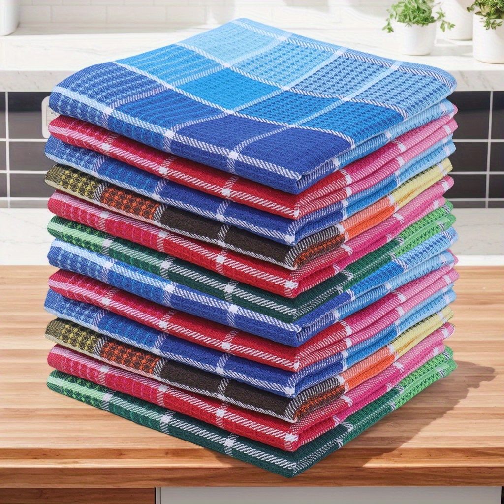 6/12pcs Premium Dishcloths Set, Multicolor Checkered Kitchen Towels, Waffle Weave Cleaning Cloths, Highly Absorbent Scouring Pads
