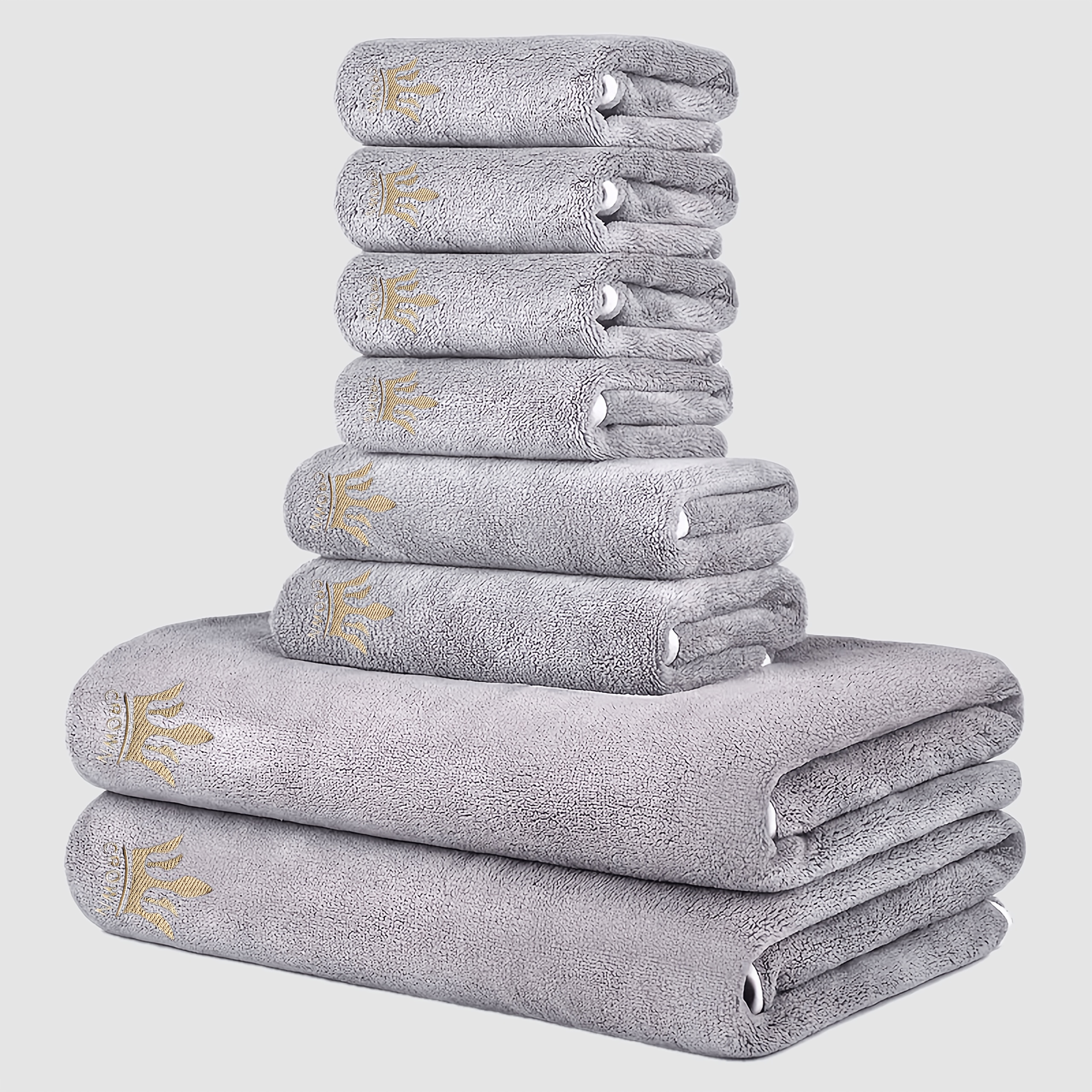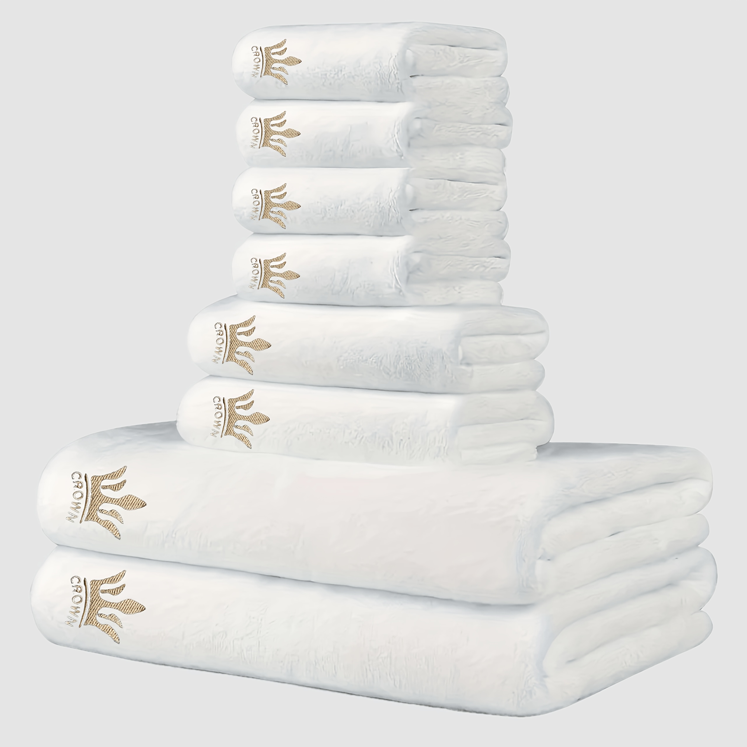 8pcs Ultra-Soft Coral Set with Crown Embroidery, 2pcs 70 x 140cm Towels, 2pcs 42 x 70cm Hand Towels