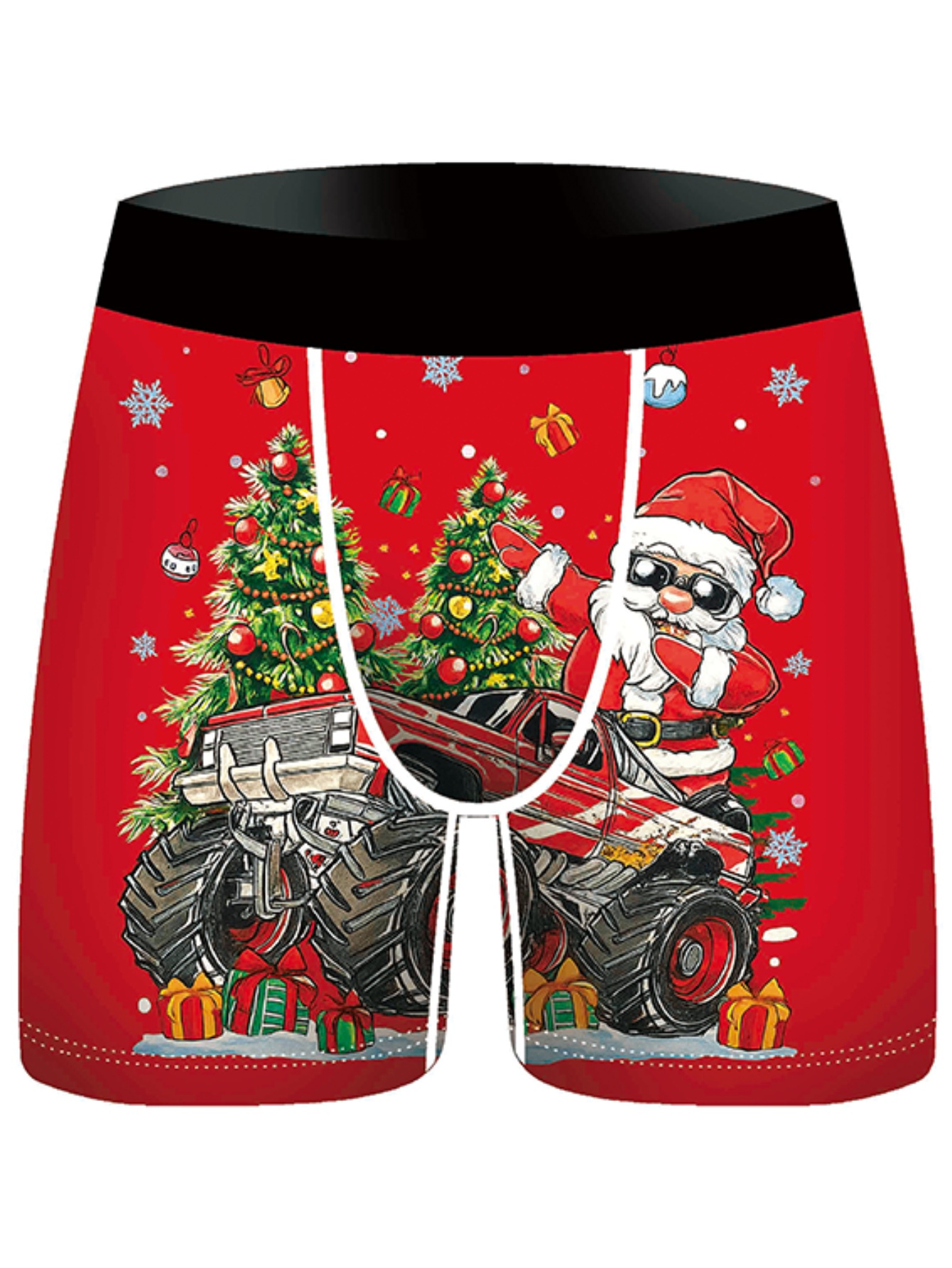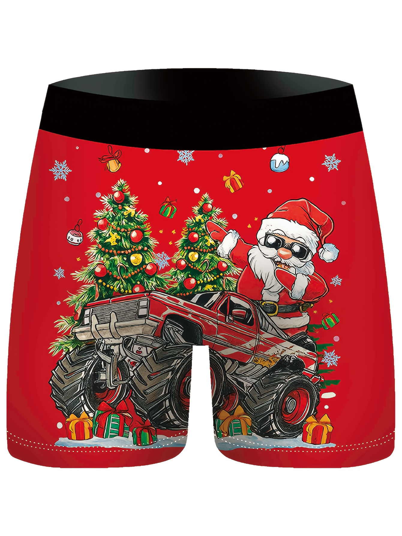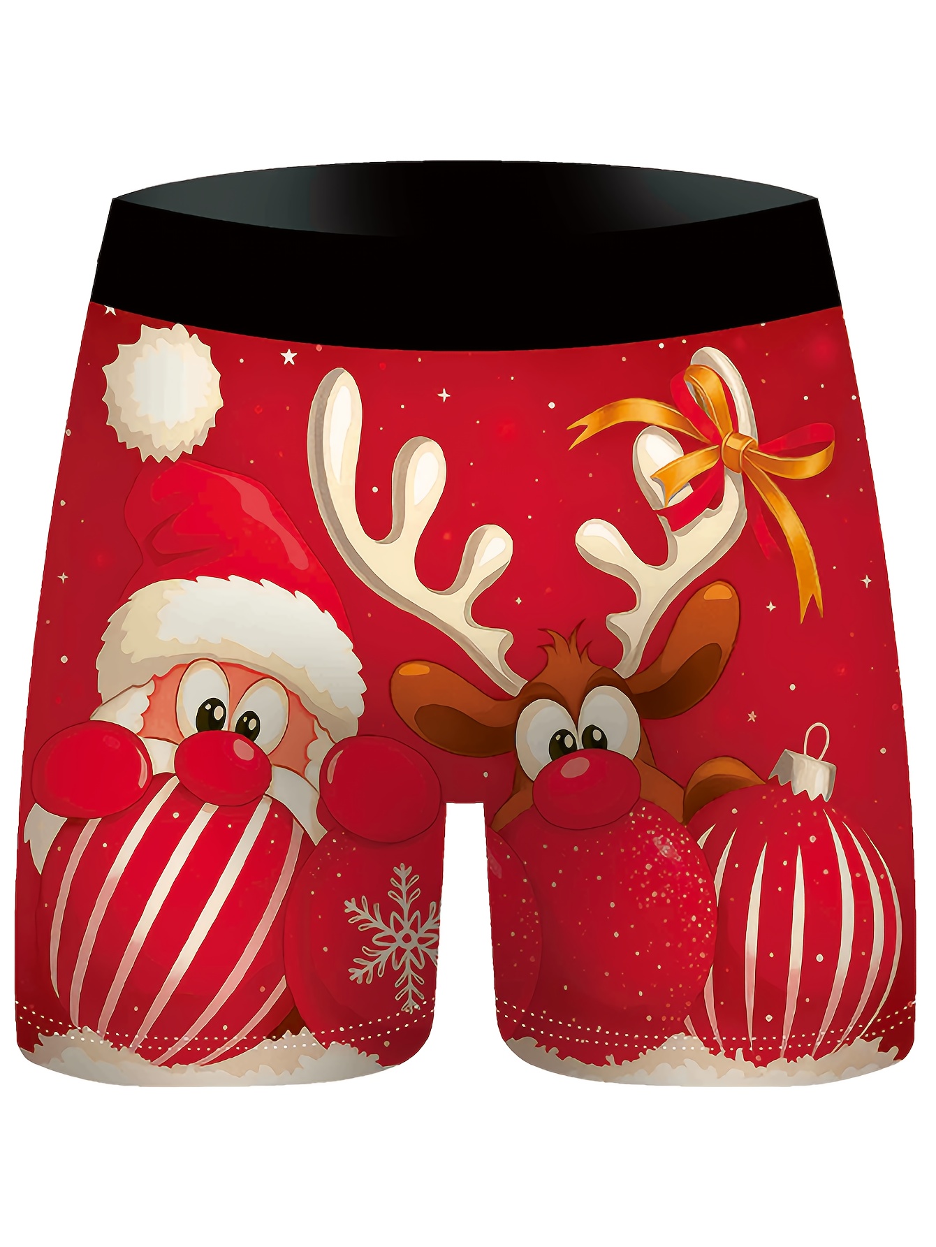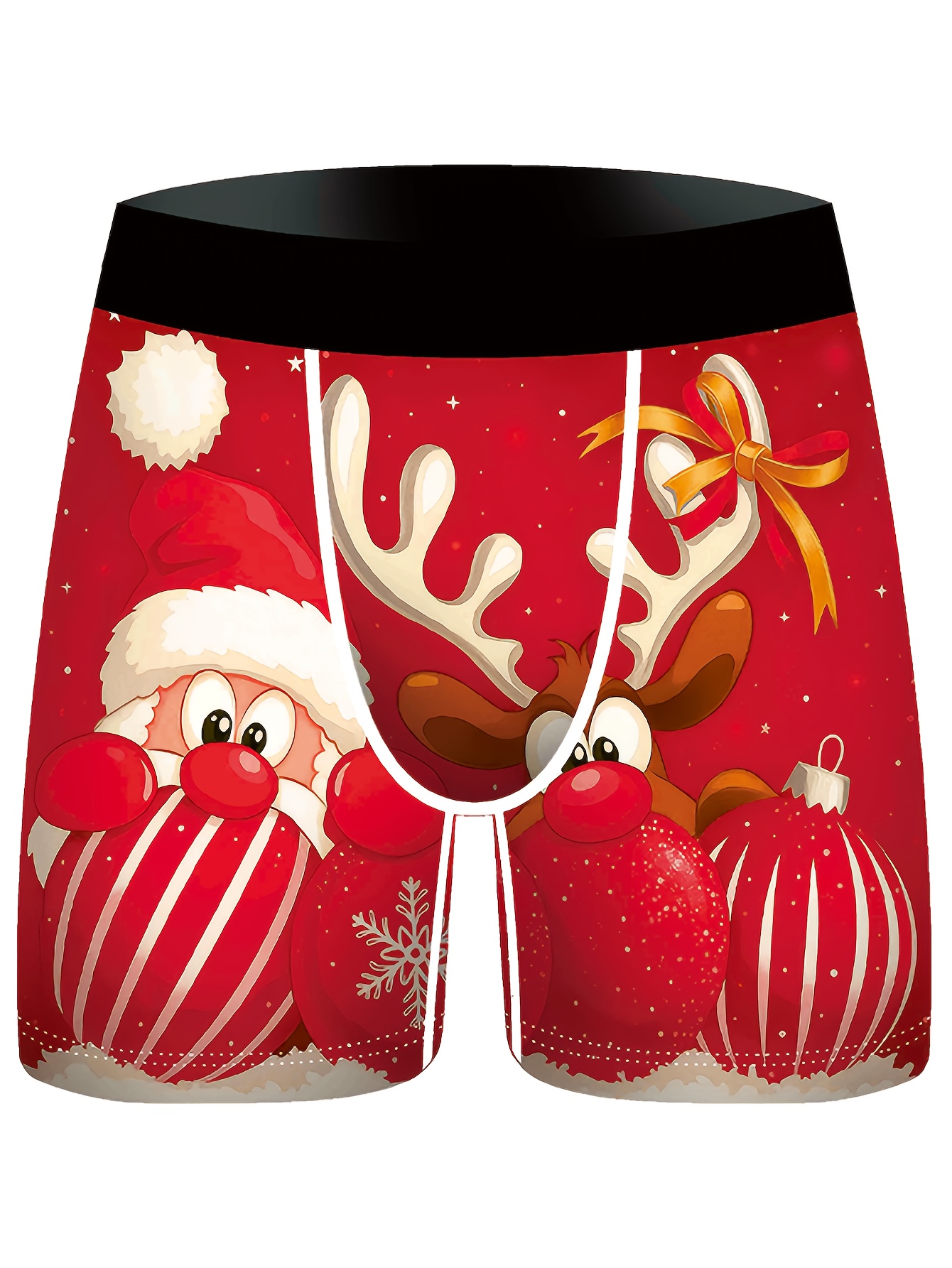 3-Pack Christmas Cartoon Digital Print Men’s Underwear, Casual Boxer Briefs, Breathable Comfortable Stretch Boxer Shorts, Sports Shorts