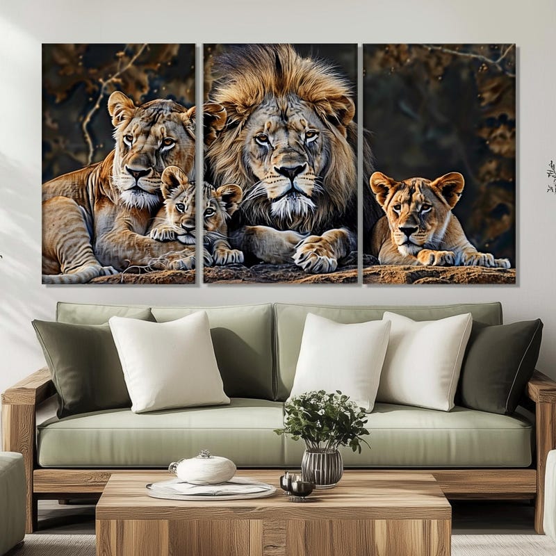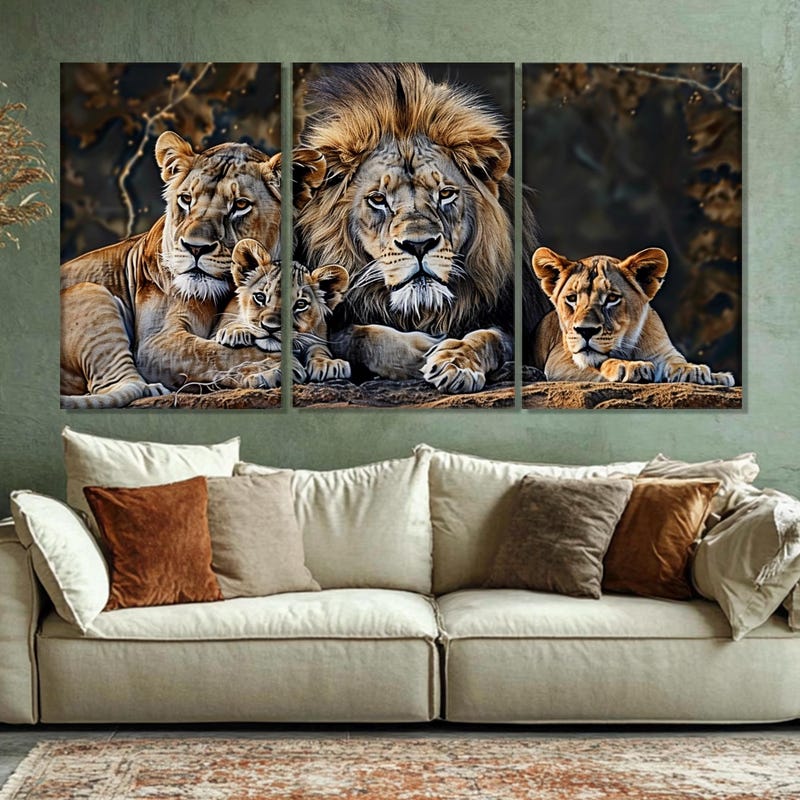 – Vintage Stijl, Herbruikbare Wandkunst voor Huisdecoratie, Ideaal voor Slaapkamers, Woonkamers, Kantoren en Badkamers, Leeuwen Decor, Leeuwenfamilie Wandkunst, Wandframe Decoratie