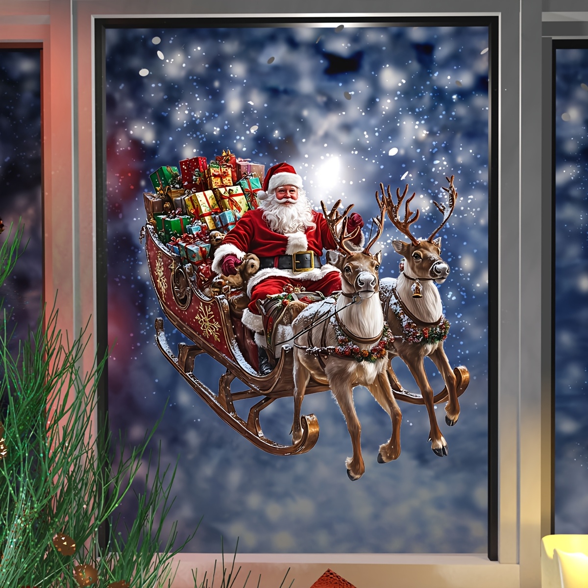 1 stuks Kerstman Schuit Raamsticker – 30x30cm PVC Statische Kleefsticker, Feestelijke Sneeuwachtige Nachtscène met Rendier & Cadeaus, Eenvoudig aan te brengen, Geen Residu, Perfect voor Kersthuisdecoratie, Kerstversiering, Kerst Raamsticker Verwijderbaar, Kerst Raamkleefsticker, Zelfklevende Raamfoto’s, Kerst Raamsticker, Raamfolie, Raamstickers, Kerst Raamfoto’s, Kerst Raamdecoratie, Raamsticker, Kerst Raamstickers, Nieuwe Kerstversiering, Kerst