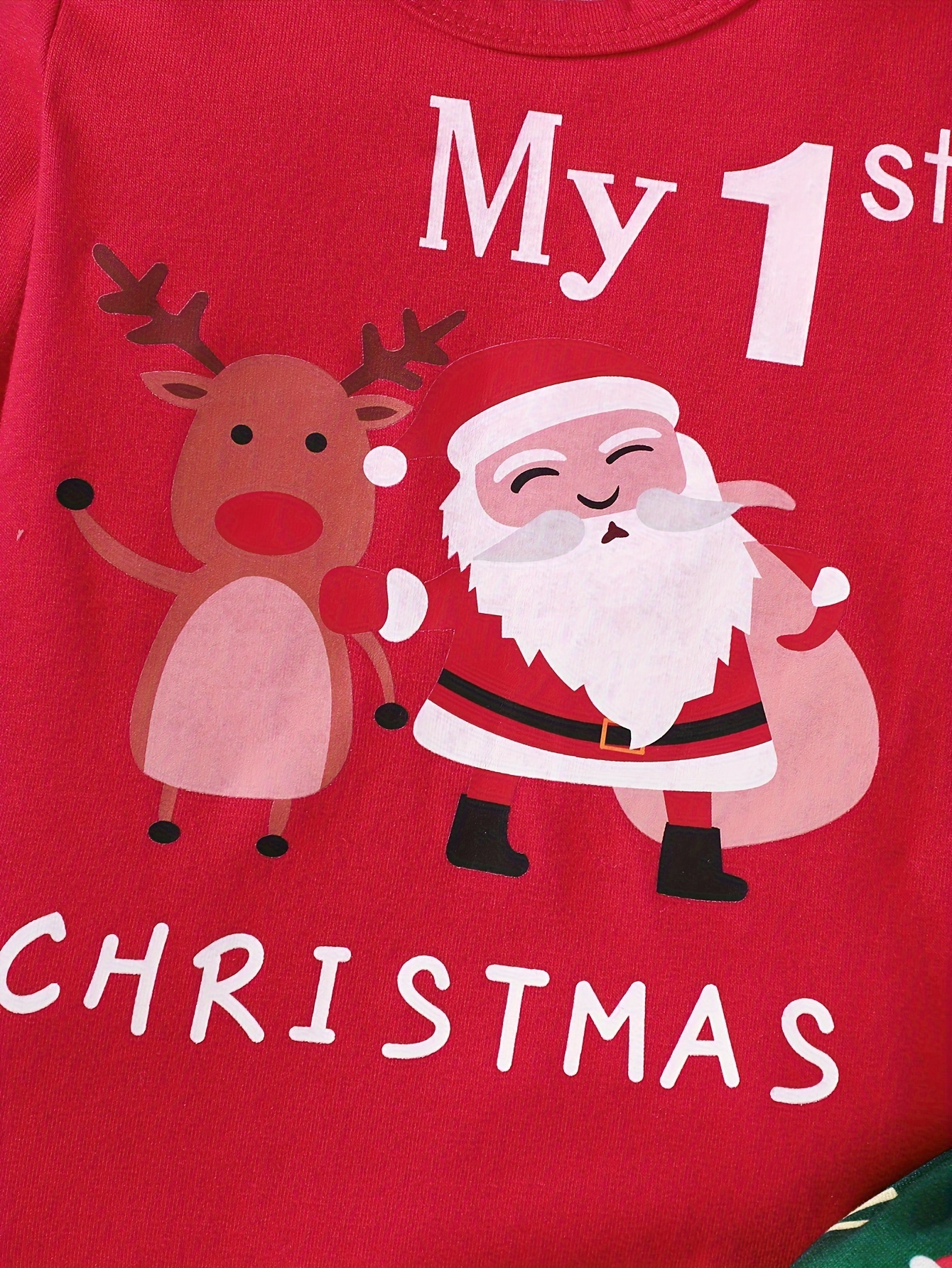 Herfst- en winterbabyjongen Kerstmis hot items, mijn eerste Kerstmis brief Santa Claus bedrukte katoenen jas + volledig bedrukte Santa Claus broek + muts driedelige set [gerichte ontwikkeling], Perfect voor buiten