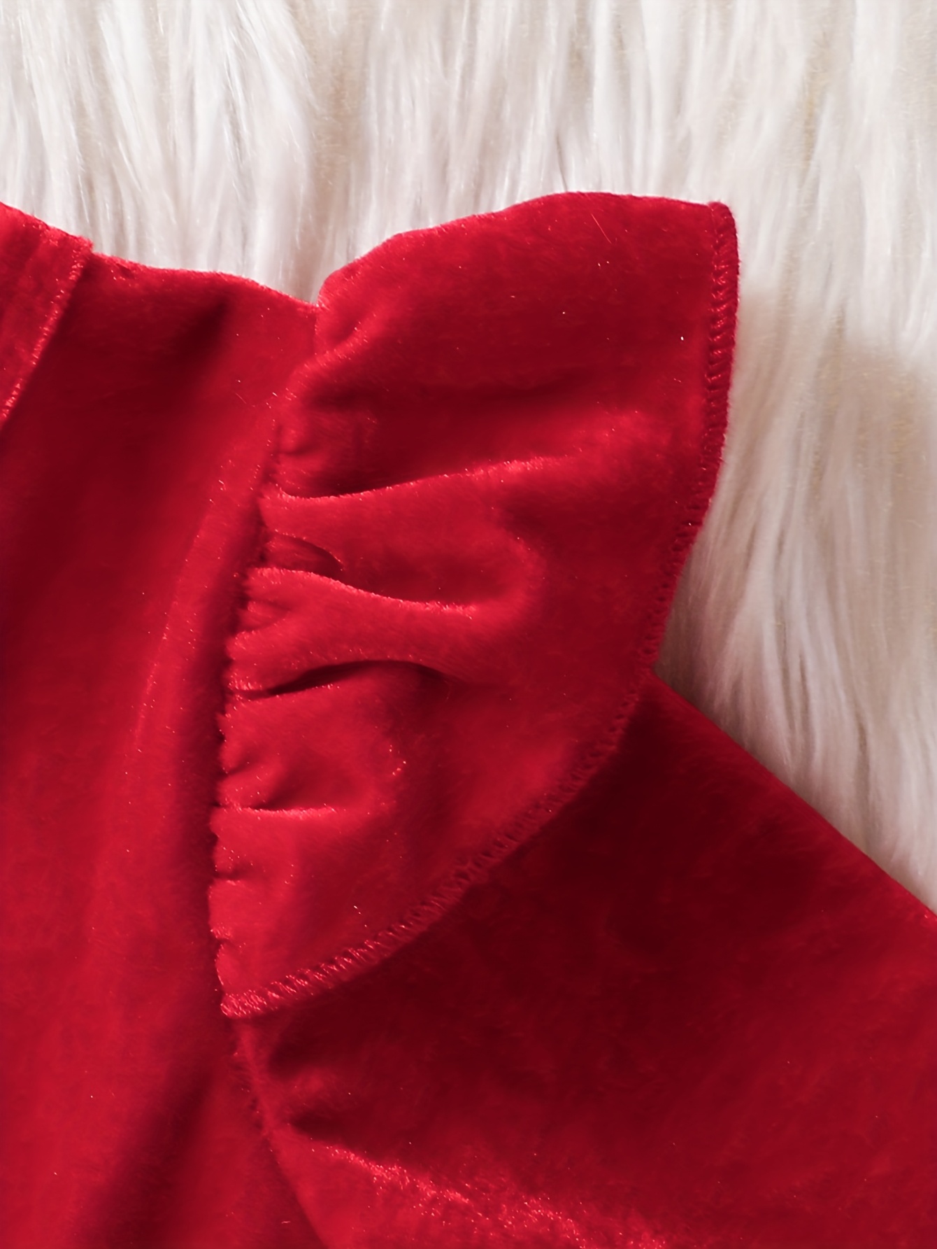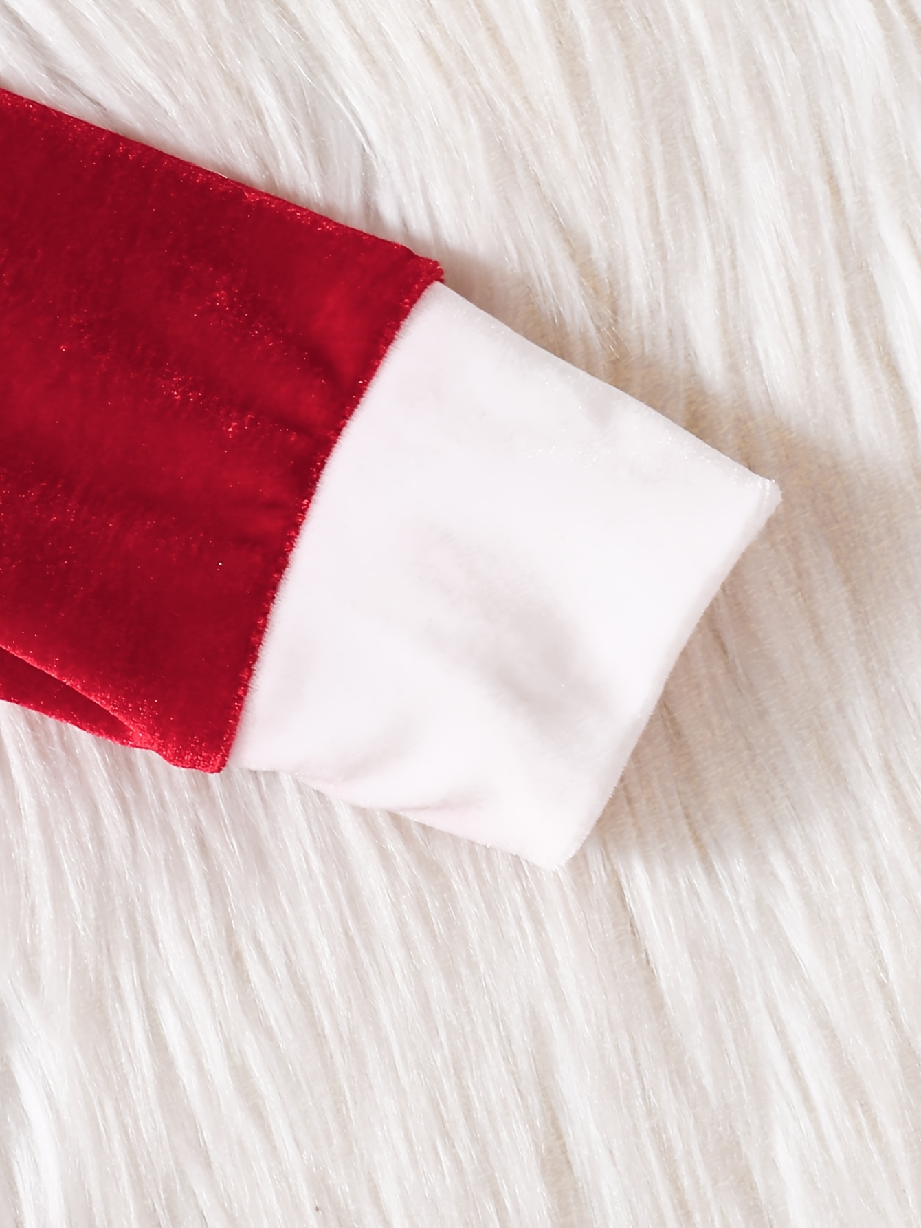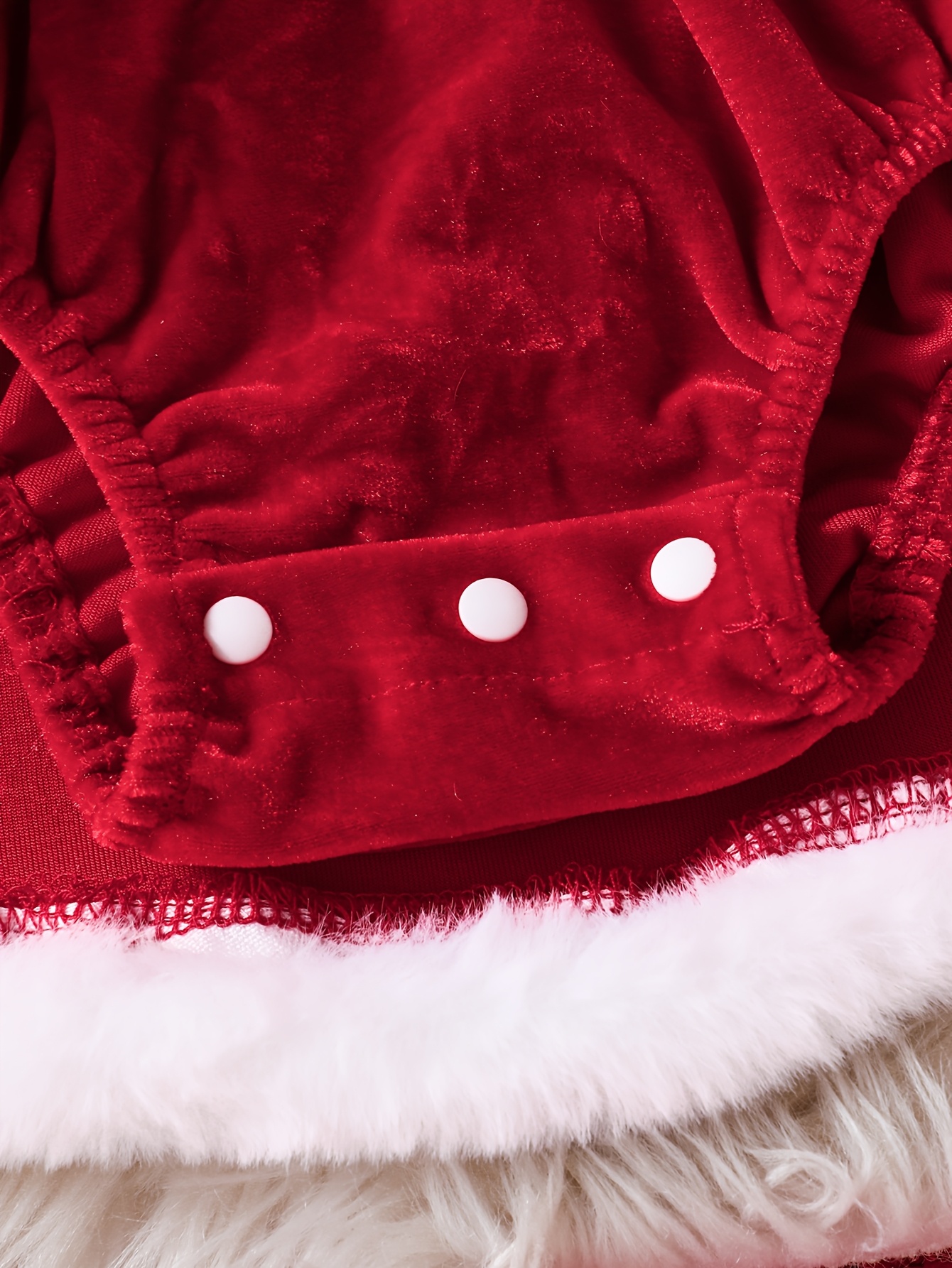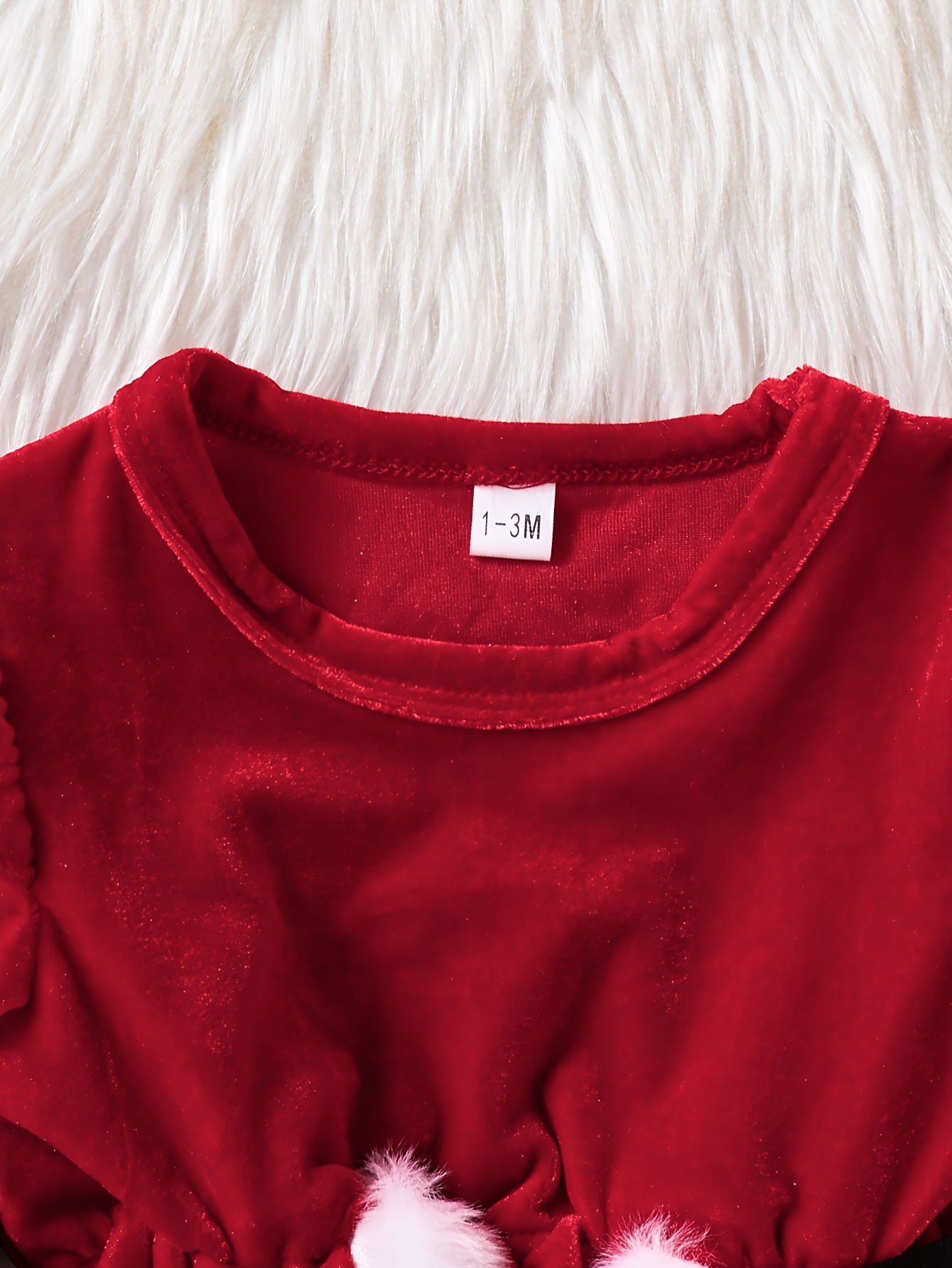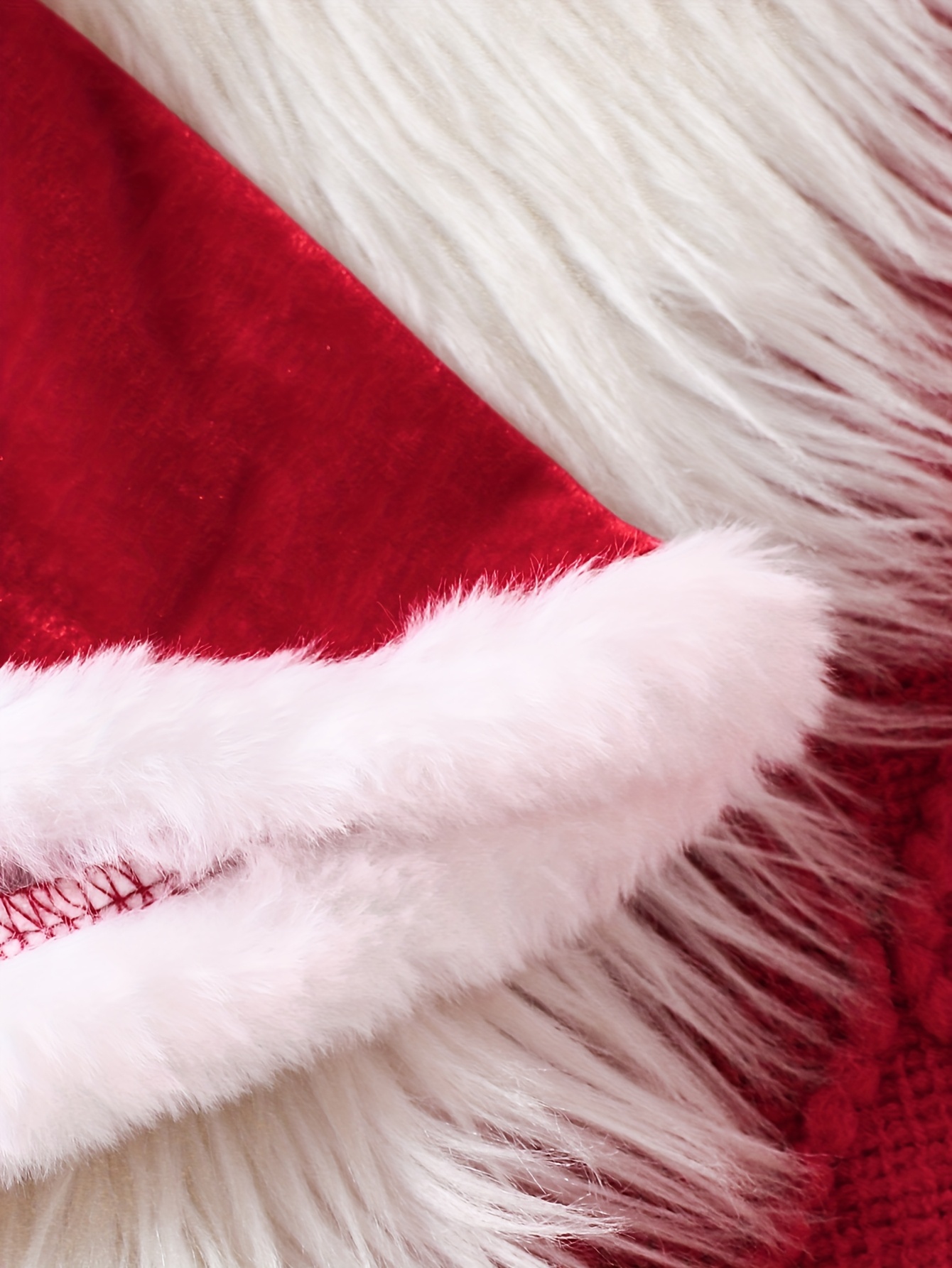 Baby Kerststijl Pluche Jurk met Lange Mouwen en Santa Hoed, Met Zwarte Riem – Ideaal voor Dagelijks Gebruik/Feestjes/Geschenken voor Meisjes