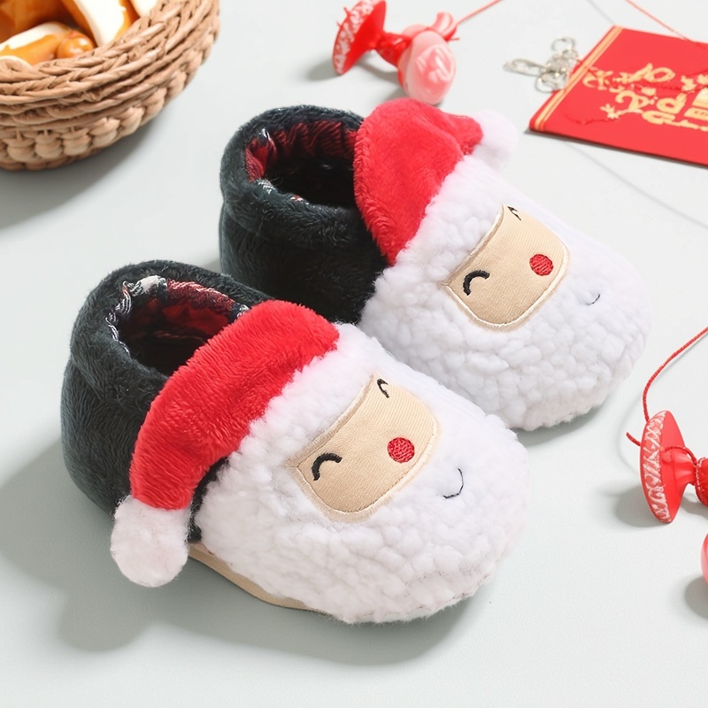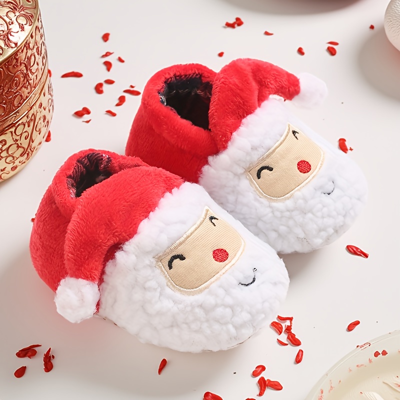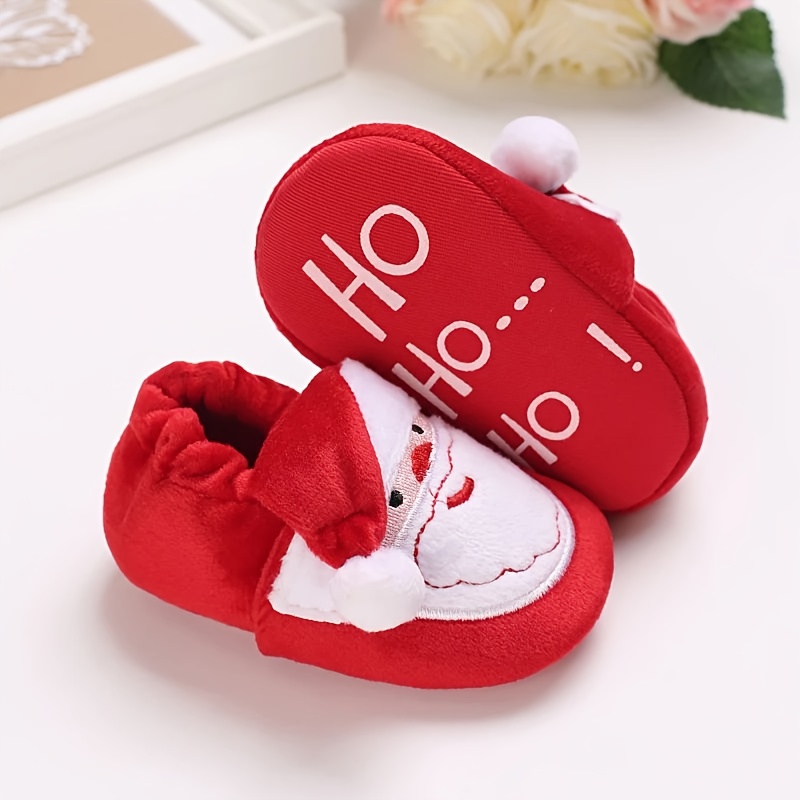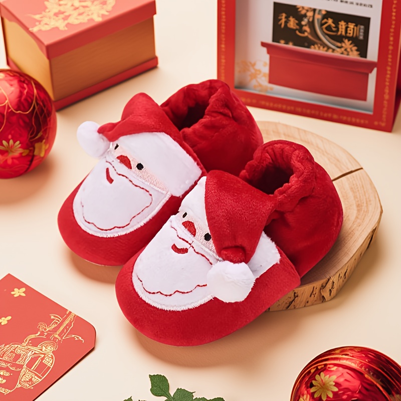 First Walking Shoes for – Soft Sole Slip-On Baby Shoes with Santa Claus Design, Non-Slip First Walkers, All-Season Footwear (0-1 Years Old, Boys & Girls)