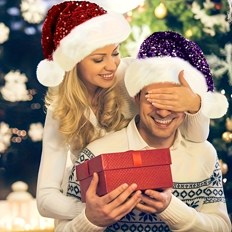 Extra Grote Volwassen Kerstfeestmuts – Glitterende Rode &/of Witte Pluche Kerstman, Dikke Feesthoofddeksel voor Feestdagenfoto’s, Cadeaus, Evenementen