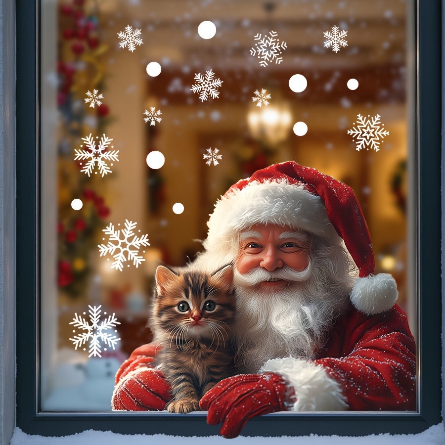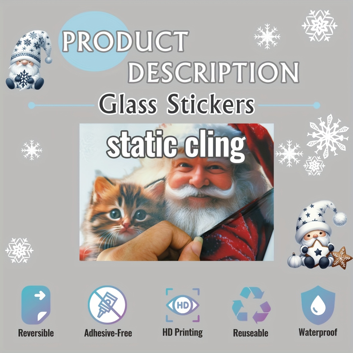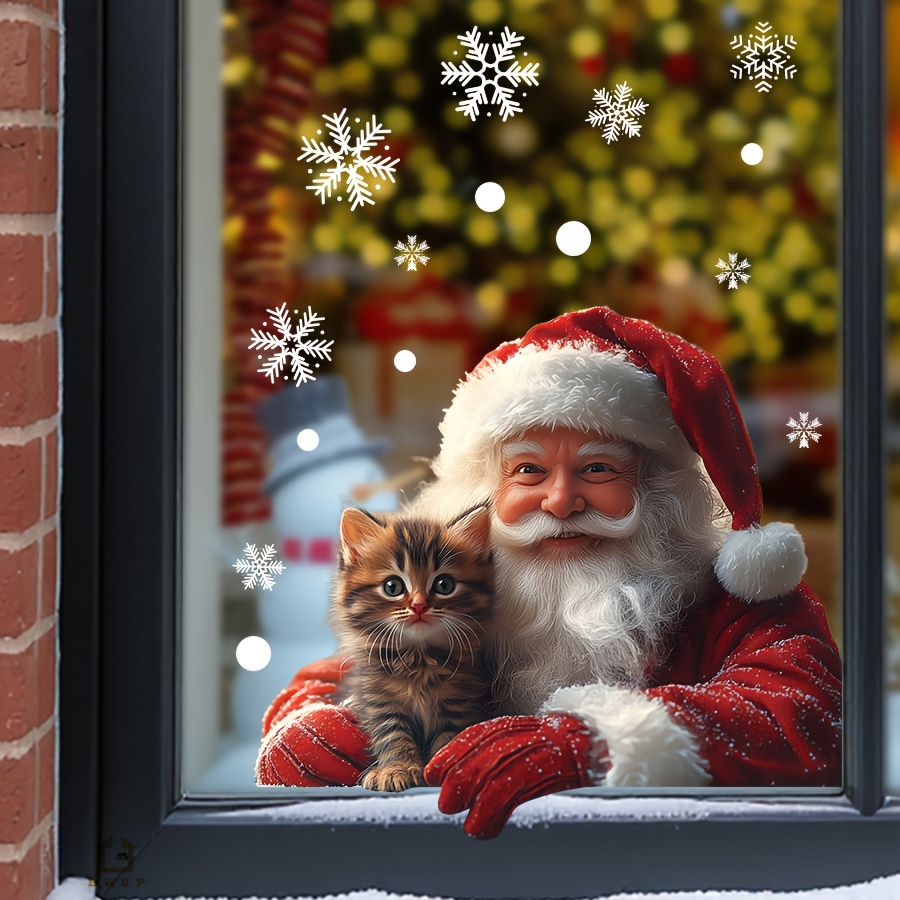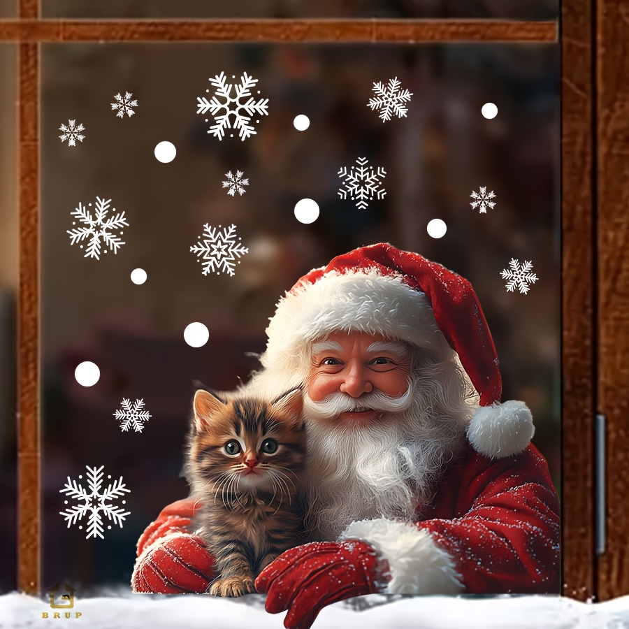 BRUP Kerstman Kat Sneeuwvlok Statische Raamstickers – Rood & Wit PVC Herbruikbare Decals – Geen Residu voor Deuren, Spiegels