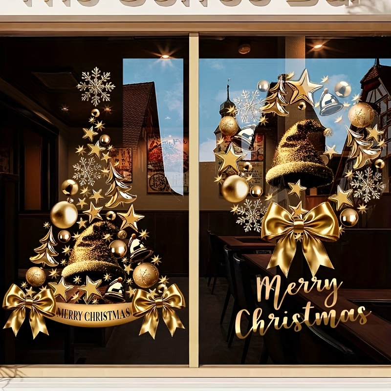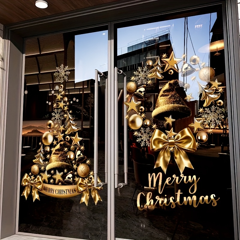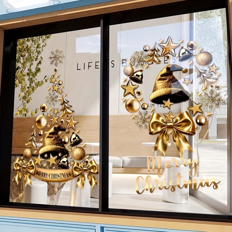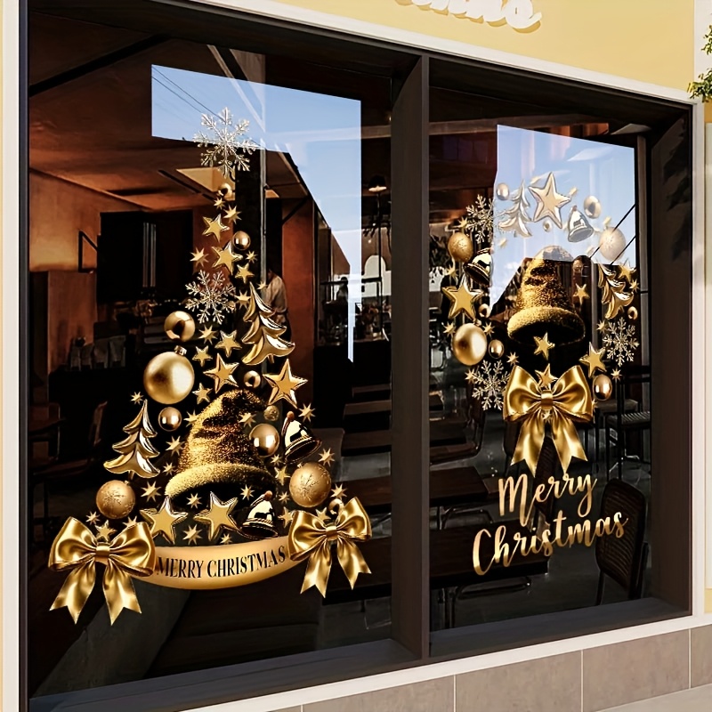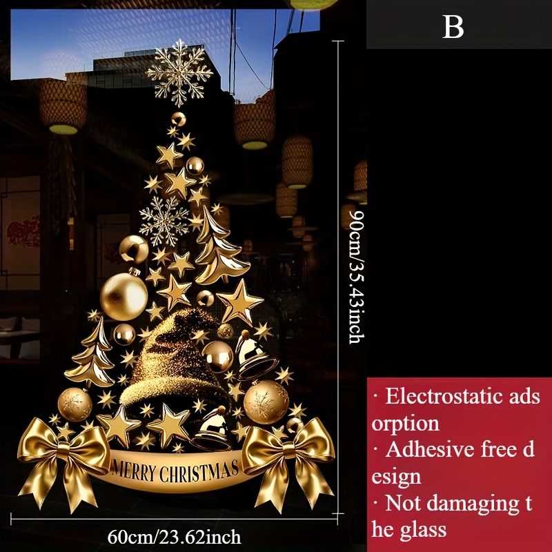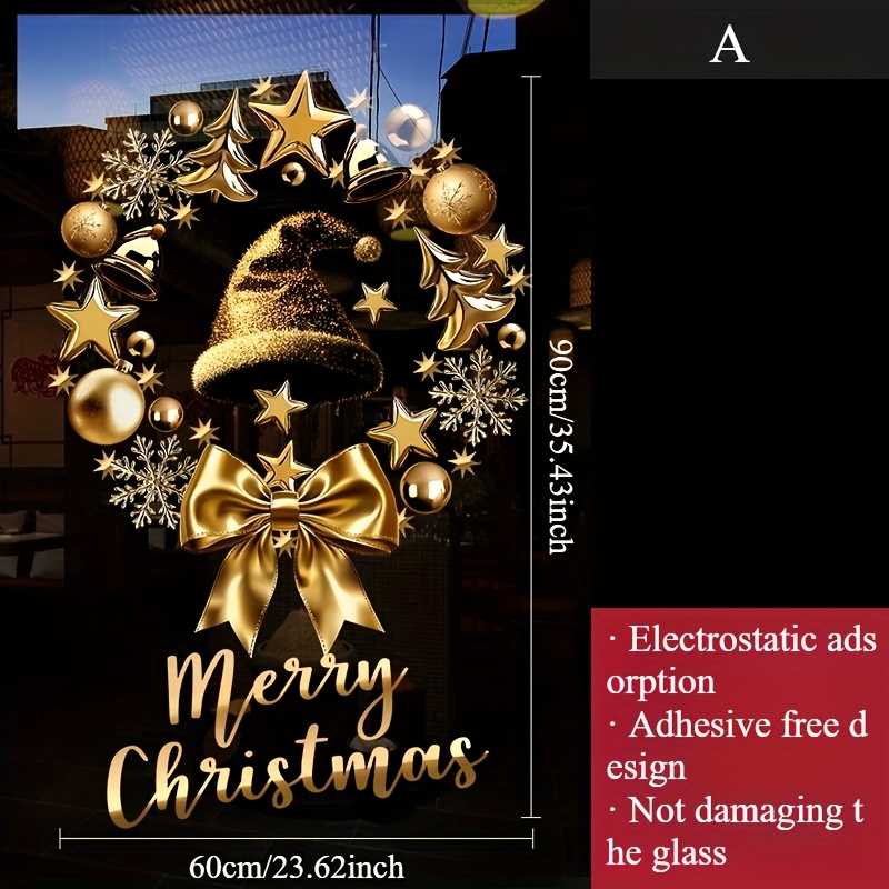 Kerstthema Gouden Krans Kerstboom Elektrostatische Sticker, Volledige Electrostatisch Adsorberende Voorkant en Achterkant Kleurontwerp