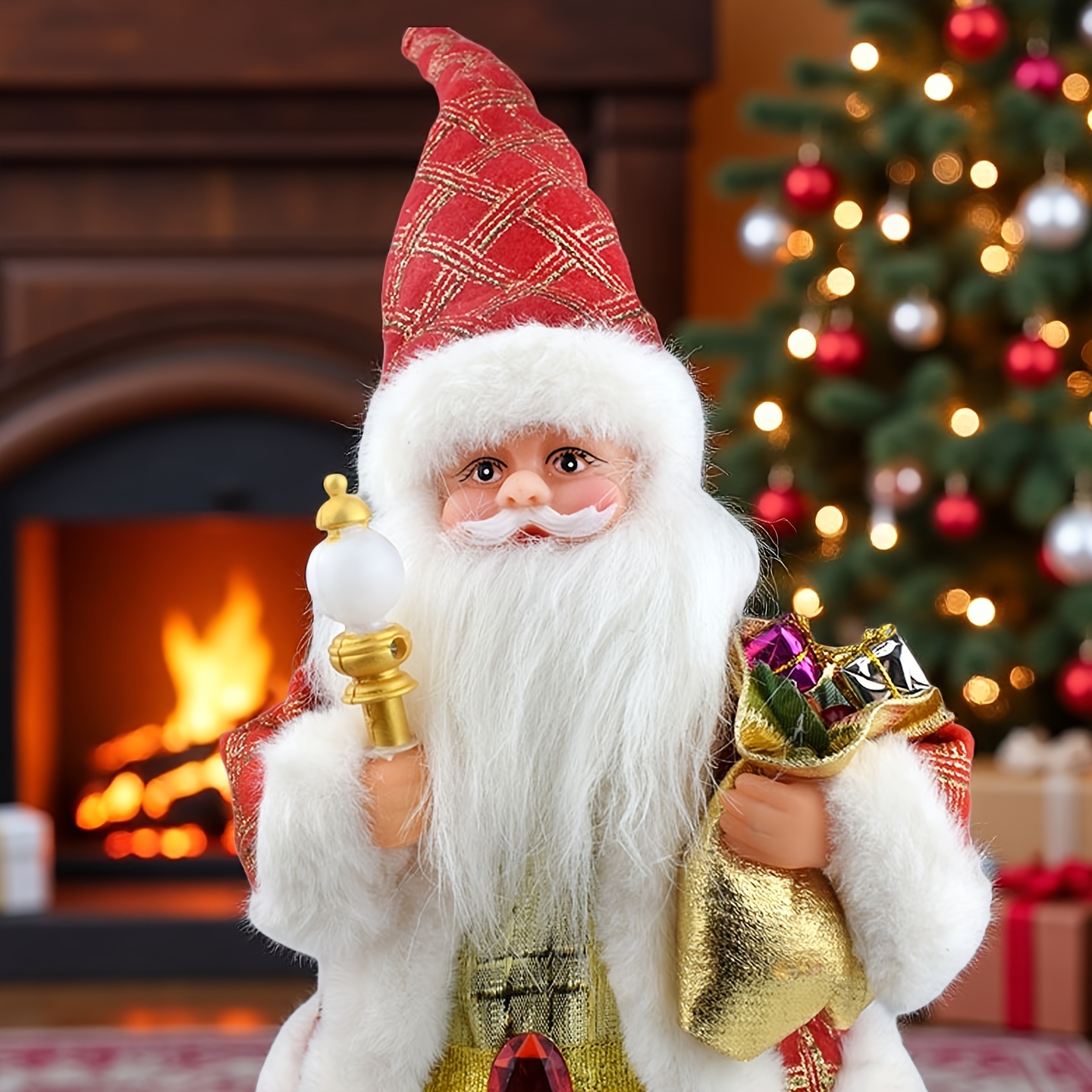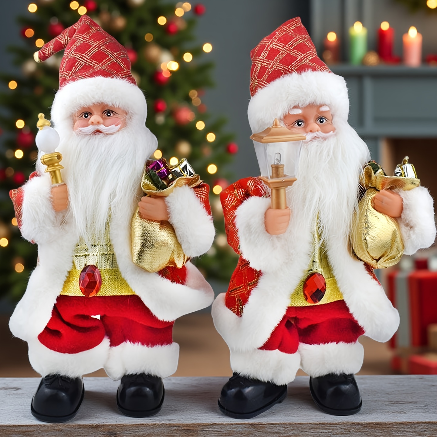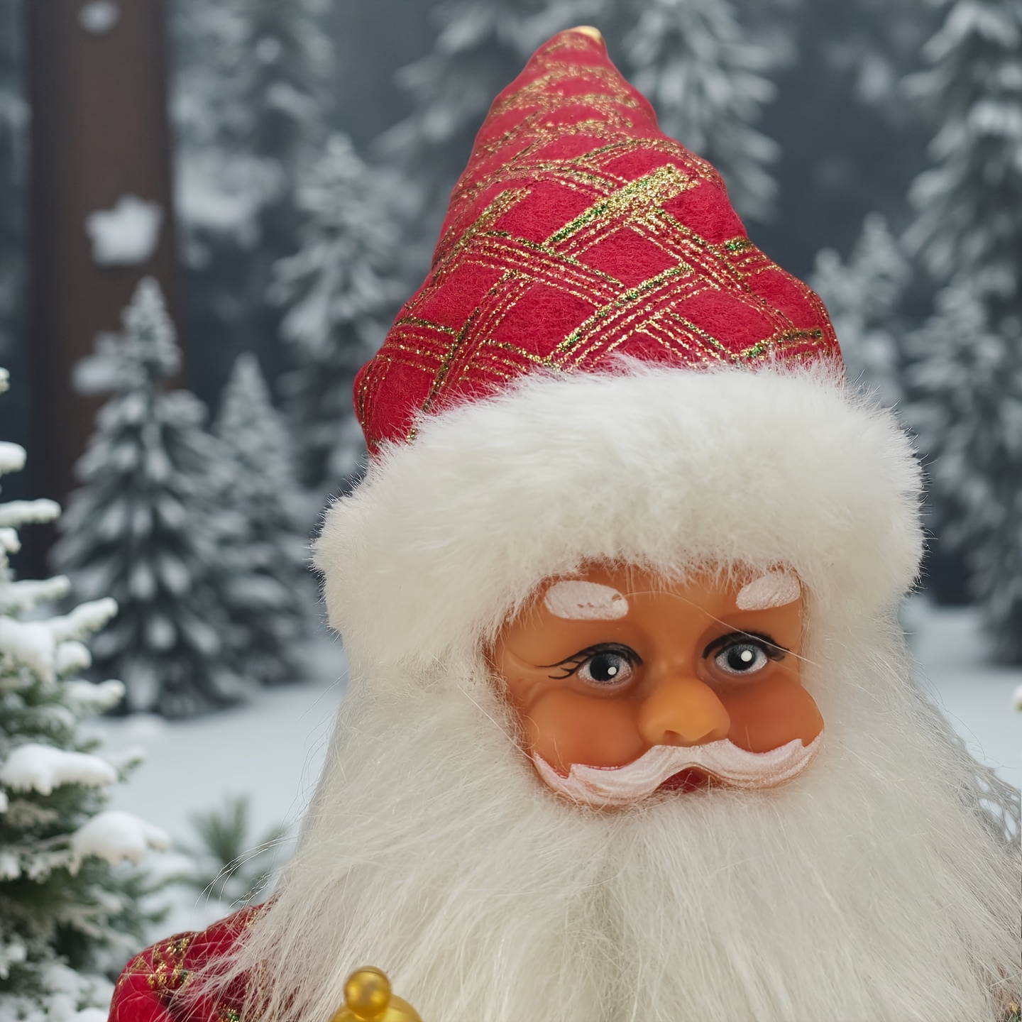 – Springend Geanimeerd Plastic Kersversiering met Ophanghaak, Rood & Gouden Traditionele Outfit, Witte Baard en Zwarte Laarzen voor Buiten/Feesttafel, Raam of Schoorsteenmantel Decoratie – Klassieke Santa Pop