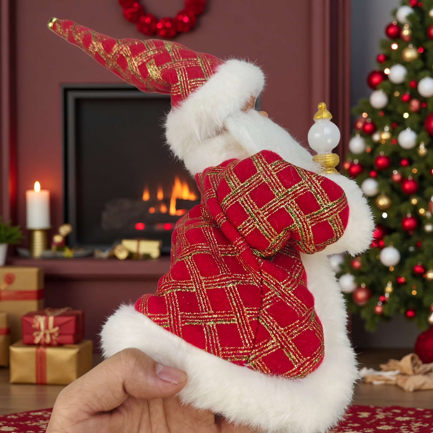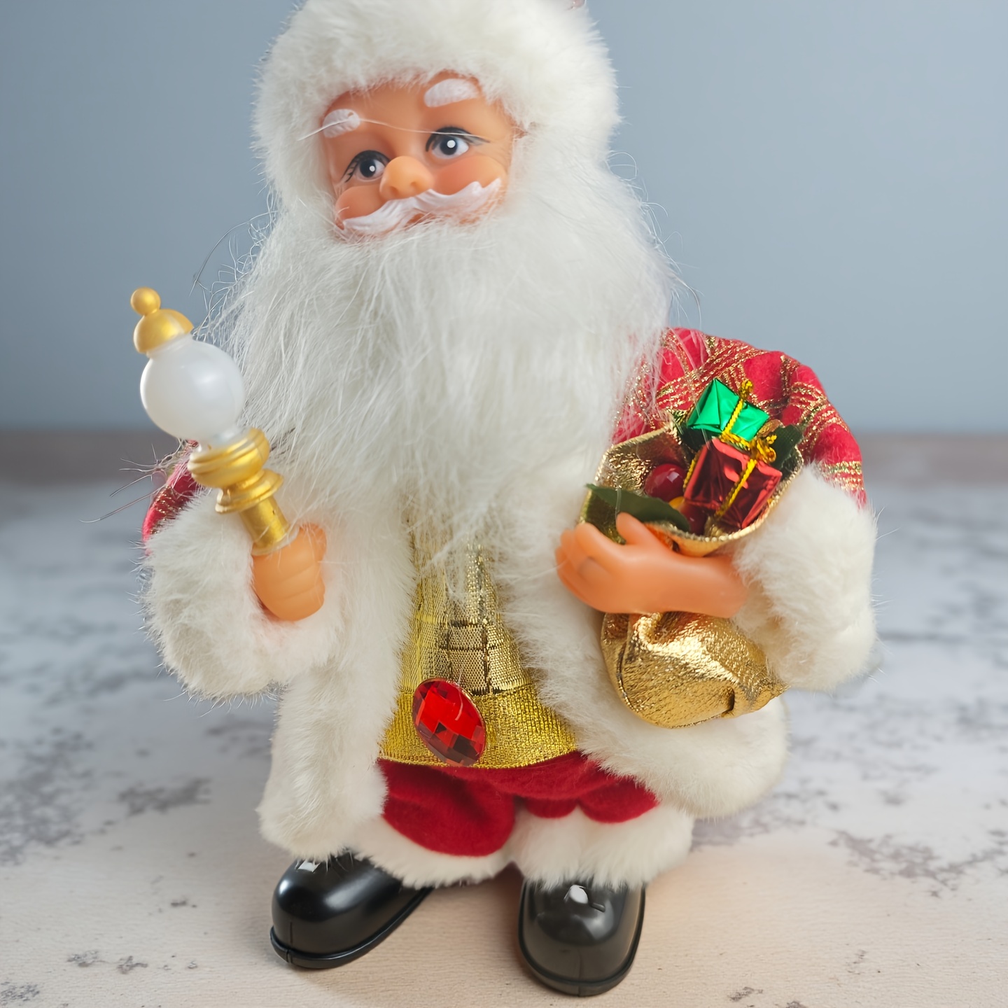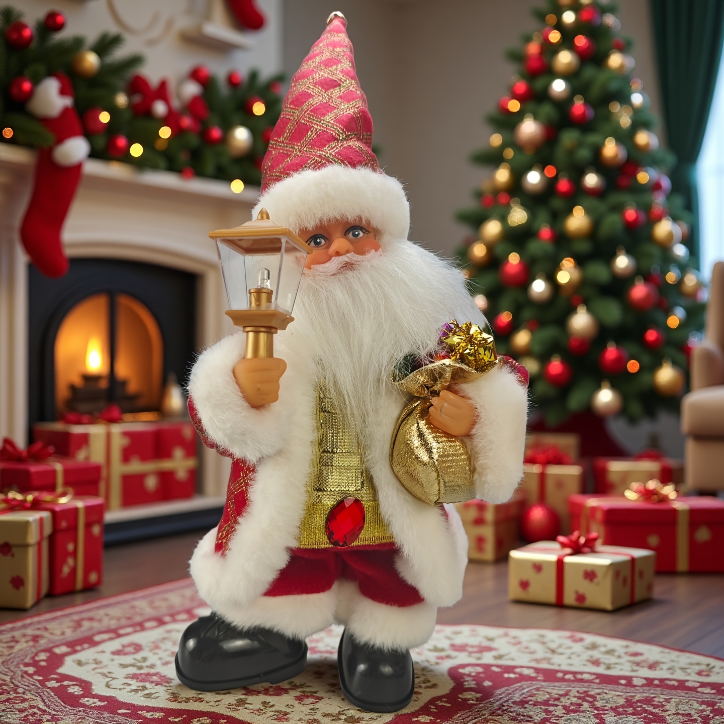 – Springend Geanimeerd Plastic Kersversiering met Ophanghaak, Rood & Gouden Traditionele Outfit, Witte Baard en Zwarte Laarzen voor Buiten/Feesttafel, Raam of Schoorsteenmantel Decoratie – Klassieke Santa Pop