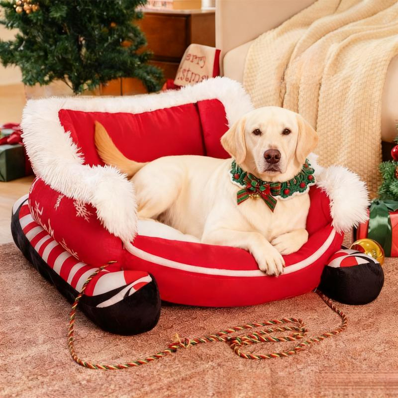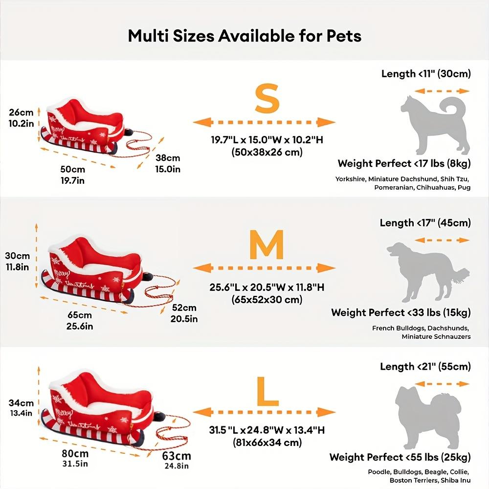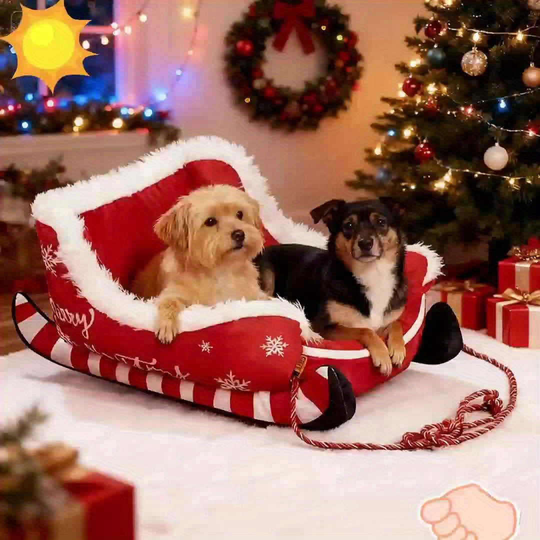 PETFEET Christmas Sled Cat Bed & Dog Bed – Winter Warm Pet House with Removable Washable, Sleigh-Shaped Pet Pad for Cats/Dogs