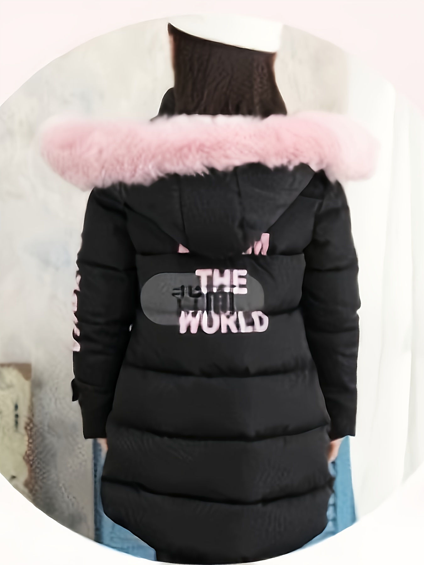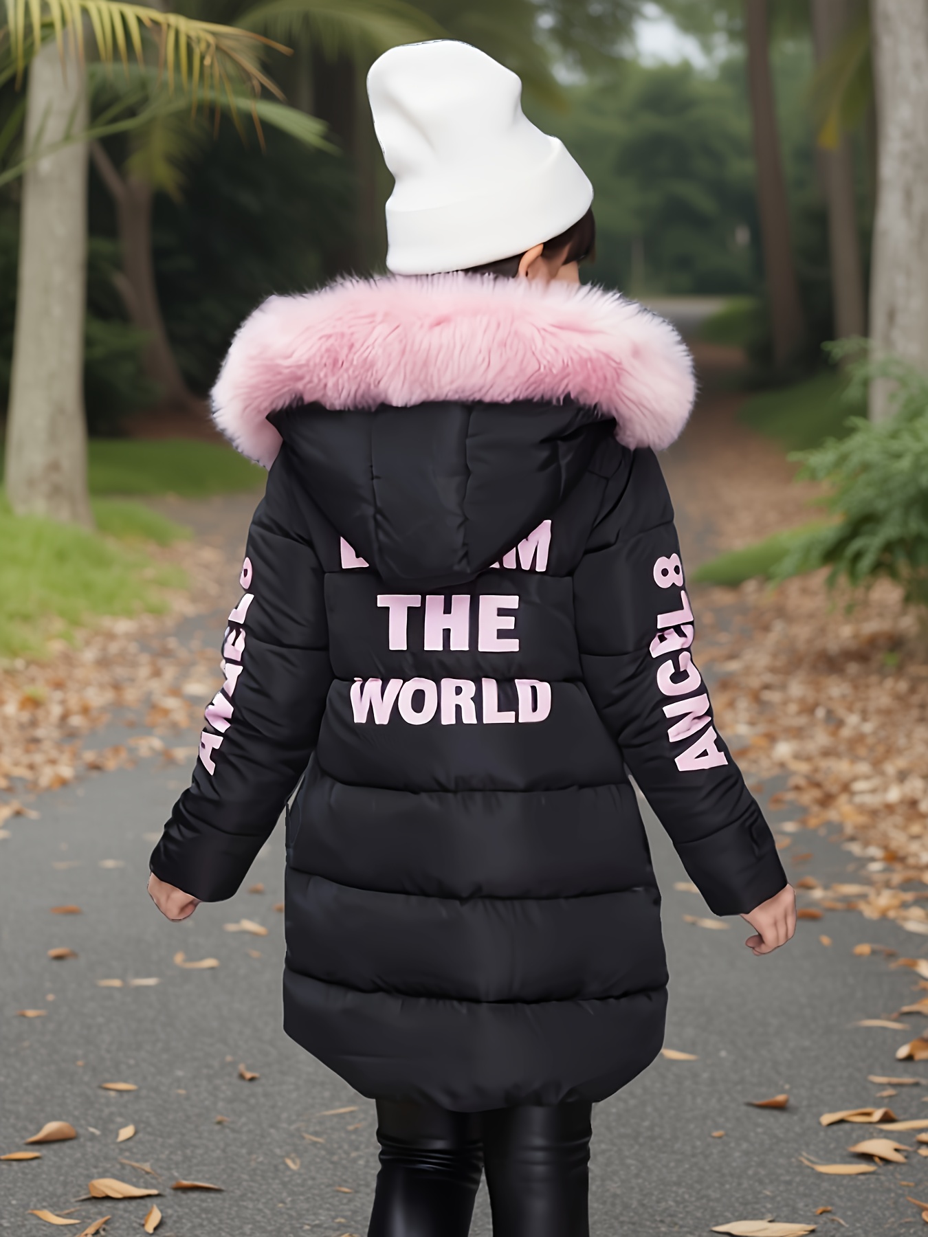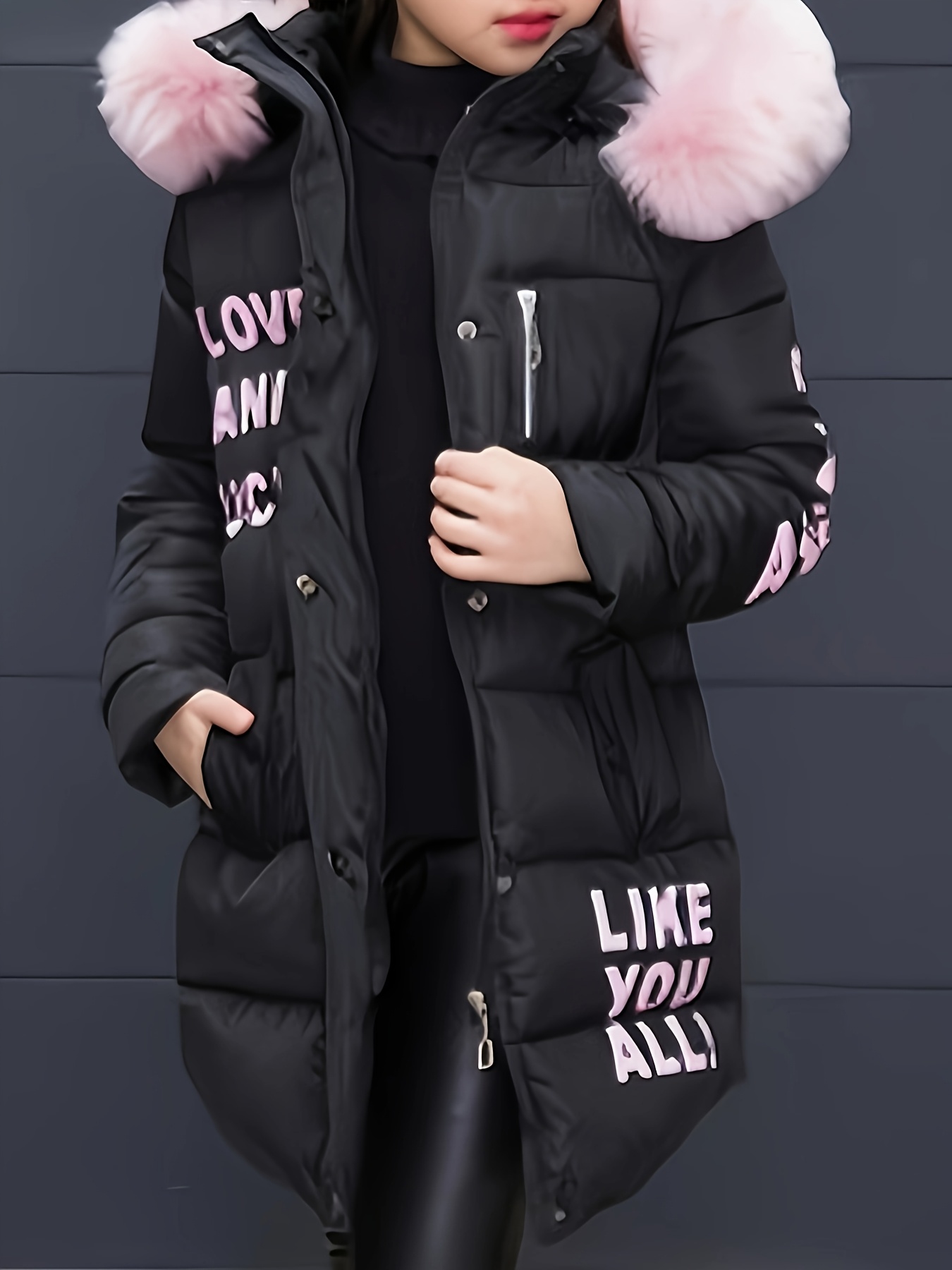 Stijlvolle Roze Lange Capuchonjas voor Dames met “LIEFDE EN GELUKKIG” Opdruk