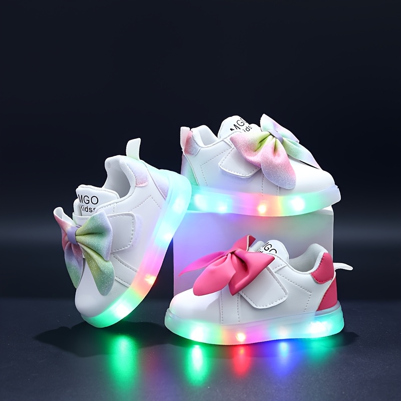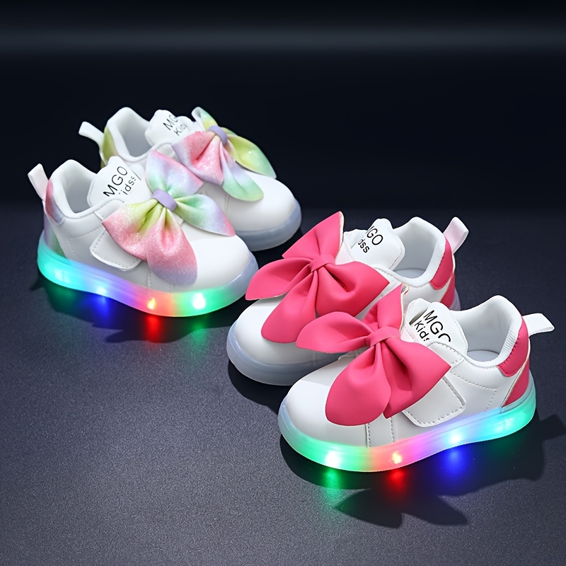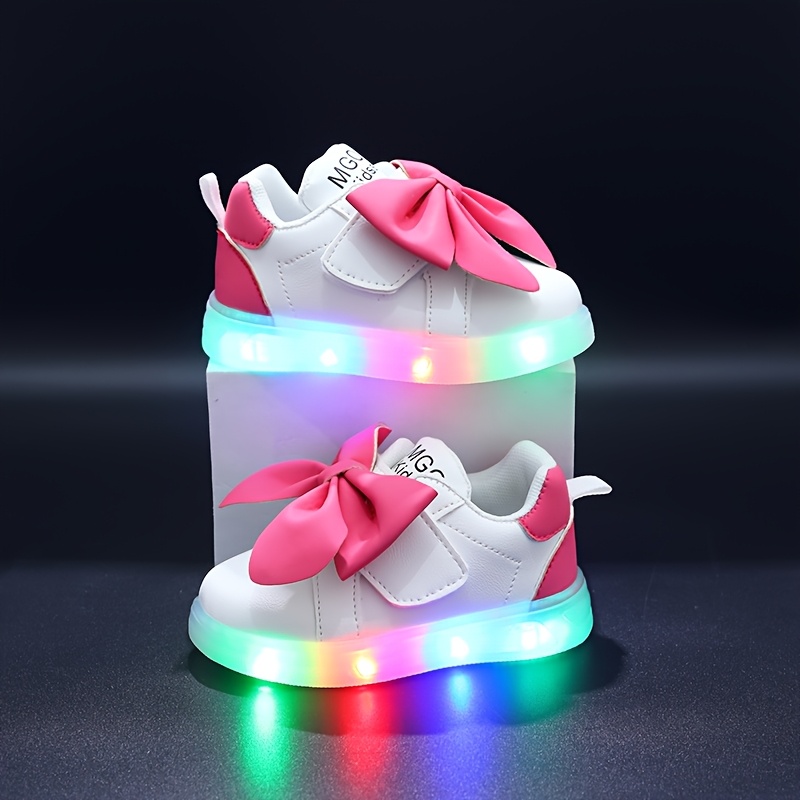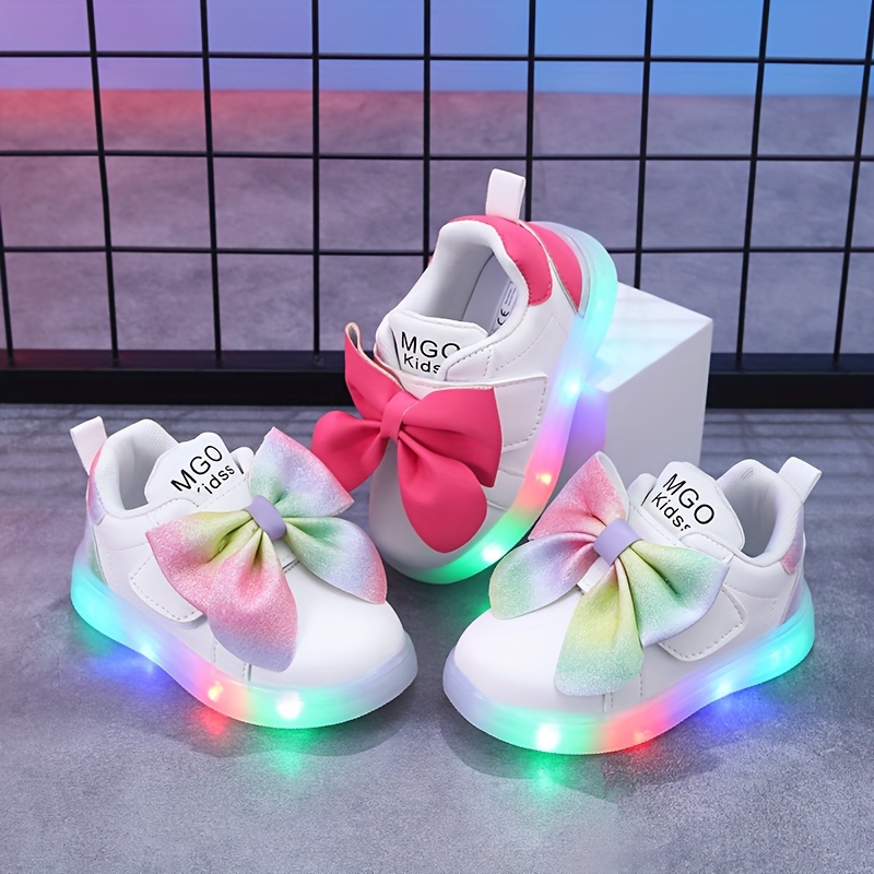 MGO Kidss Cute Bow Light-Up Sneakers voor Meisjes & Jongens – 1-3-6 Jaar, Glow-in-the-Dark Atletische Schoenen met Verstelbare Banden
