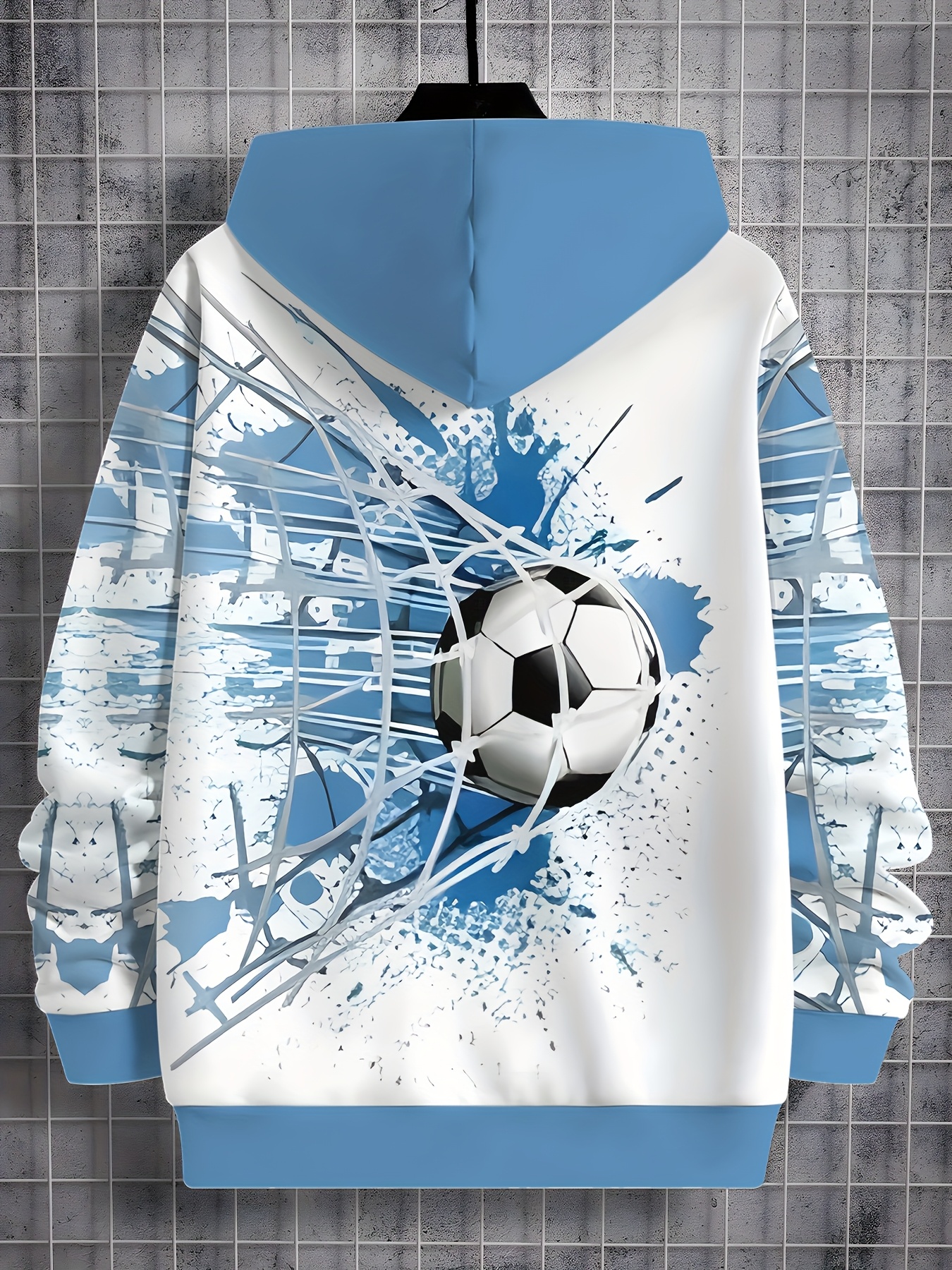 Witte en Blauwe Capuchontrui voor Actieve Kinderen (Lente/Herfst) – Kinderkleding, Lente Buitenkleding, Sportief Design, Comfortabele Stof, Voetbalfans, Casual Mode, Duurzaam Materiaal, Schoolkinderen