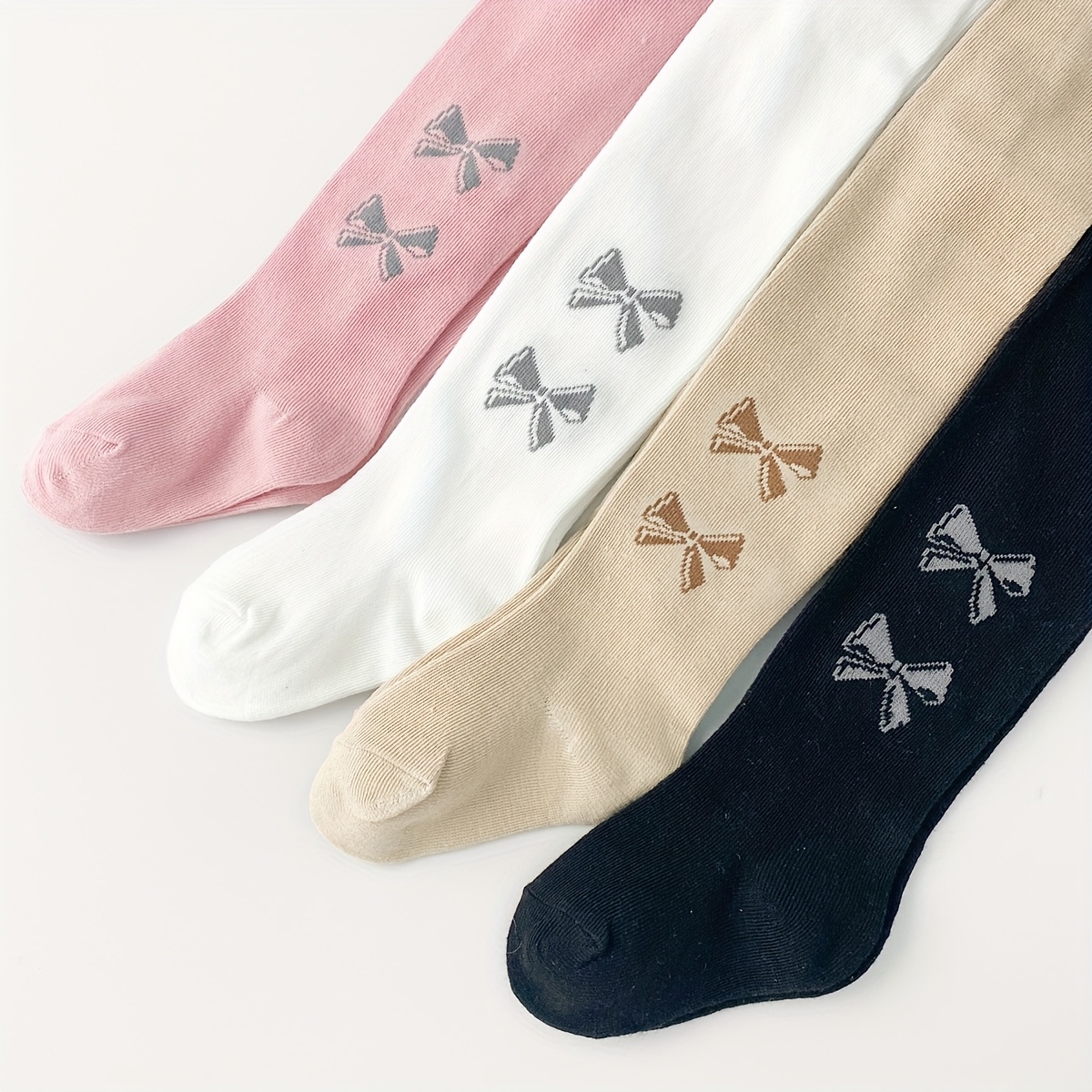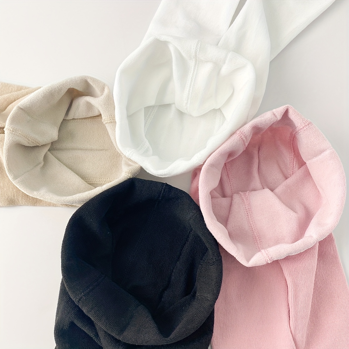 4 Paar Baby Meisjes Elastische Taille Leggings – Zachte Pastelroze/Beige/Wit/Zwart, Rekbare Peutersokken voor Meisjes, Dagelijkse & Formele Outfits – Gemakkelijk te Combineren, Peuterleggings, Kinderkleding, Speels Ontwerp, Zacht Stofmateriaal, Comfortabele Pasvorm, Kleine Kinderen