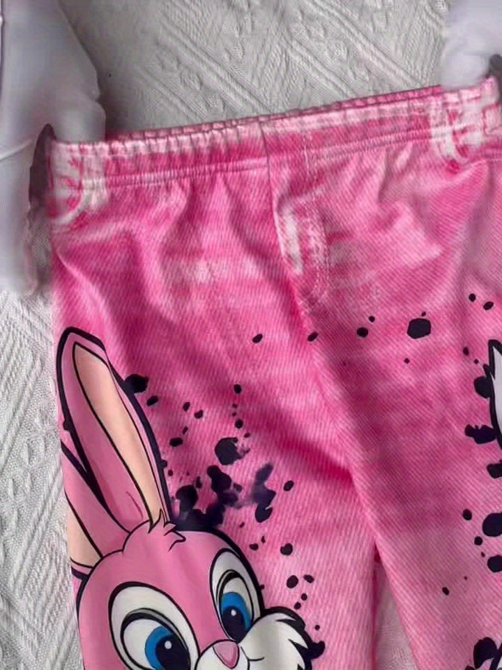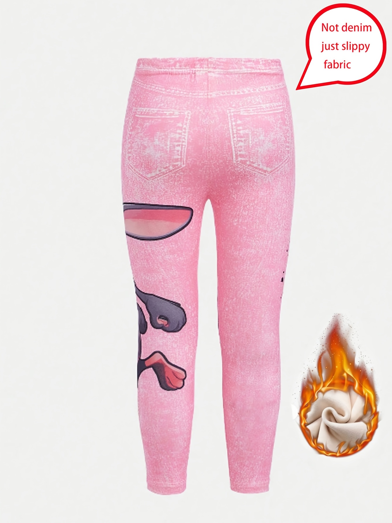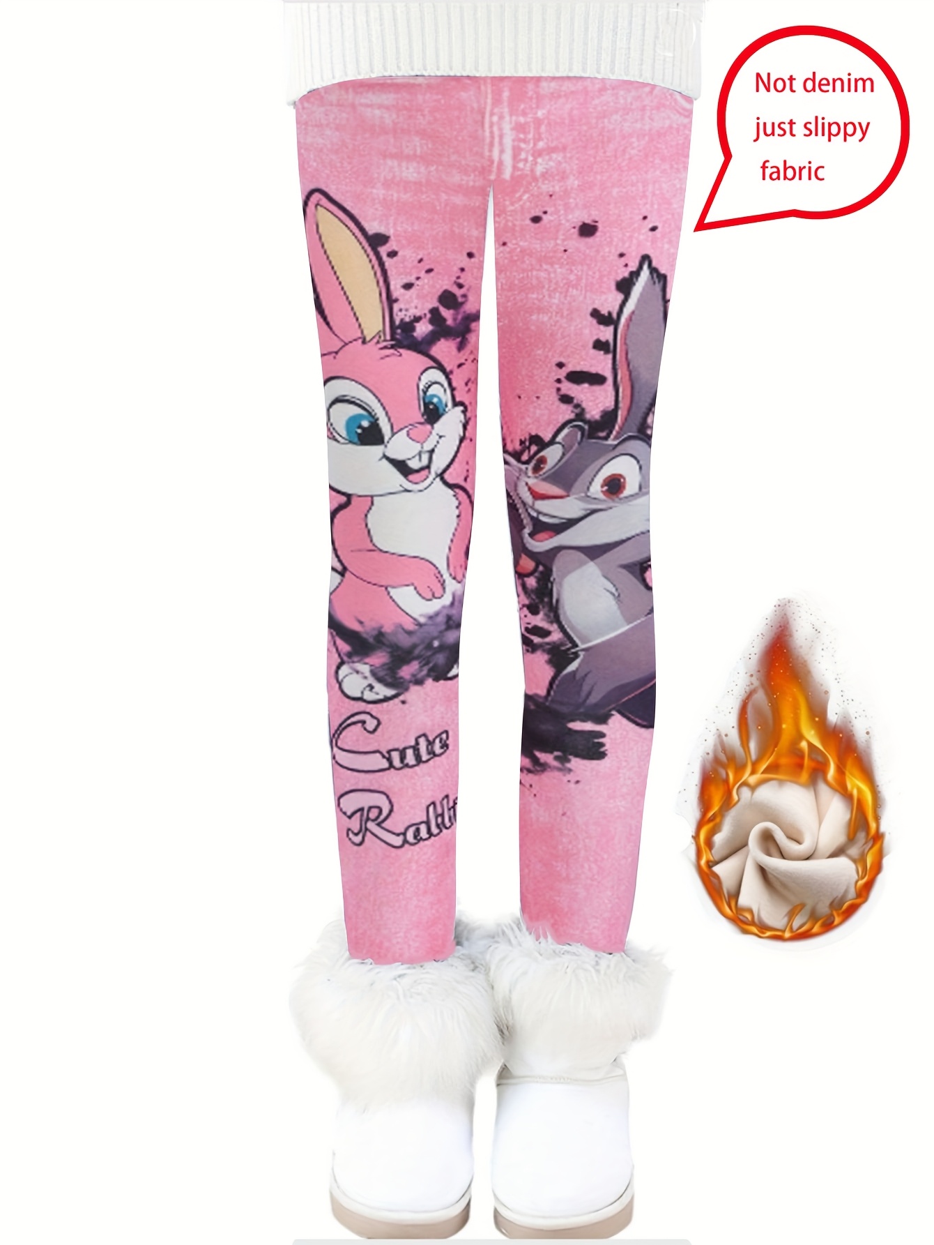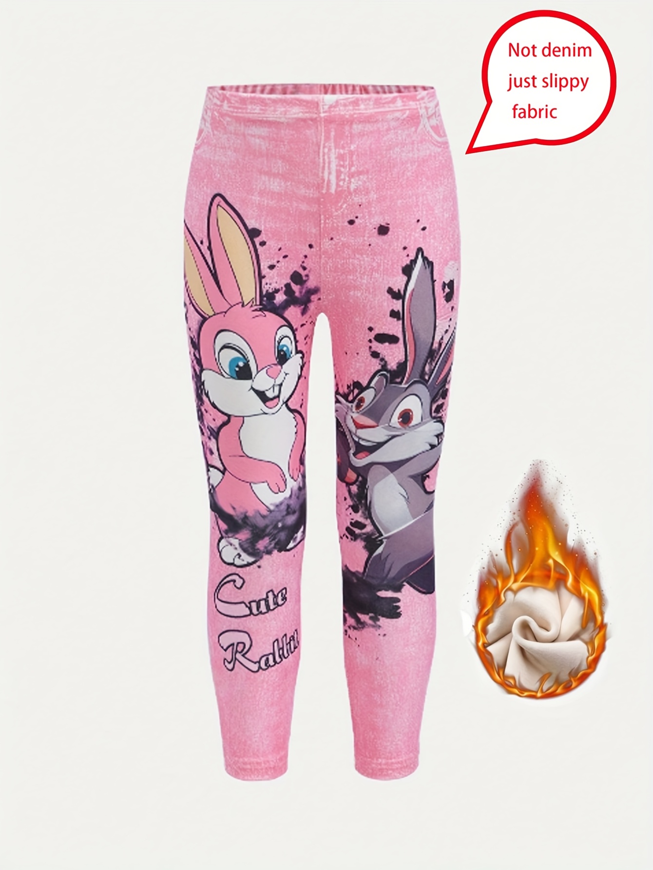 Meisjes Nieuwe Herfst-Winter Fleece Gevoerde Skinny Leggings met Konijnenprint | Zacht, Warm, Cartoon Patroon, Medium Stretch Stof