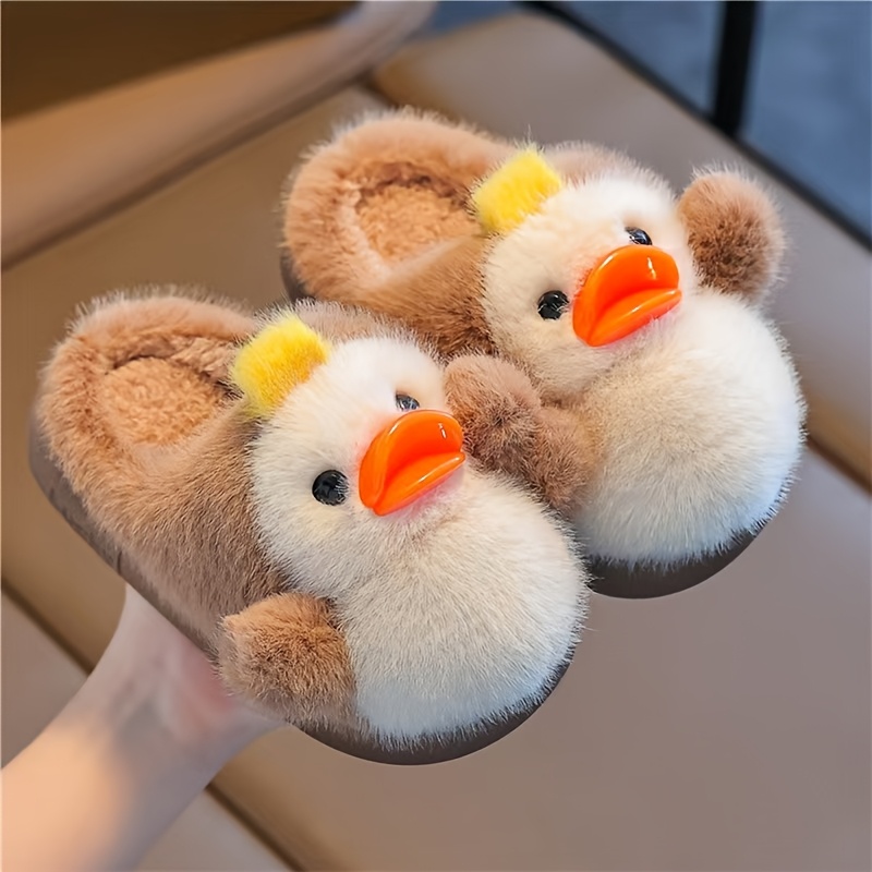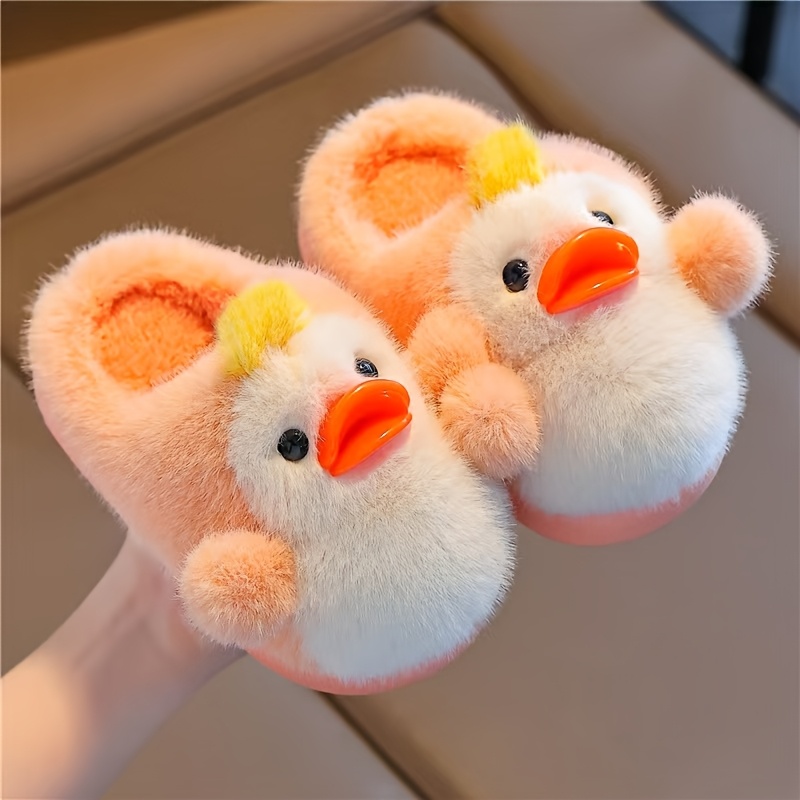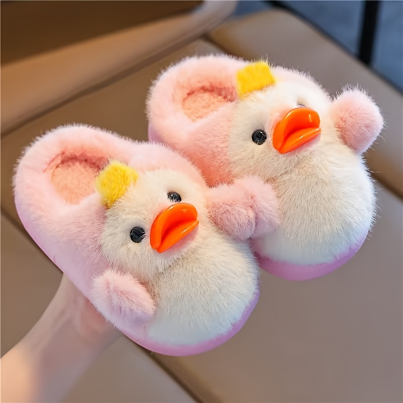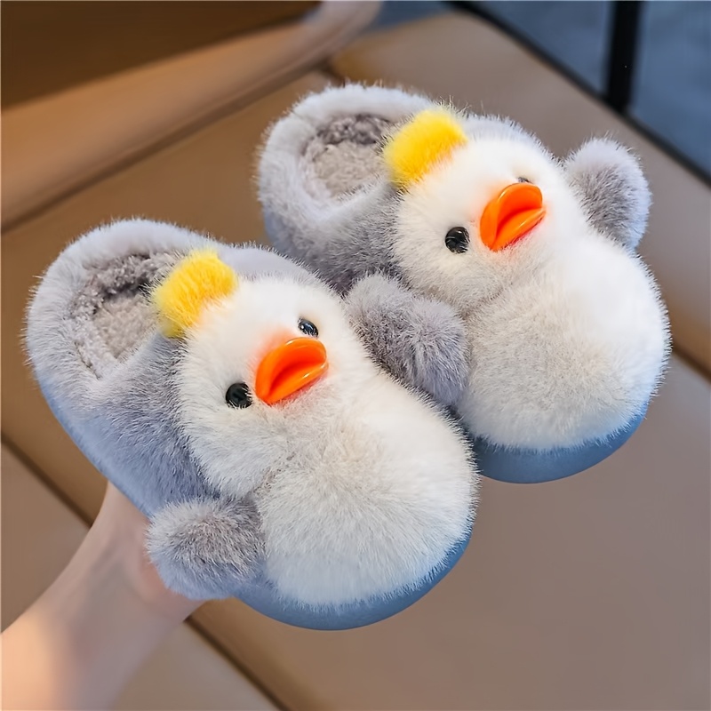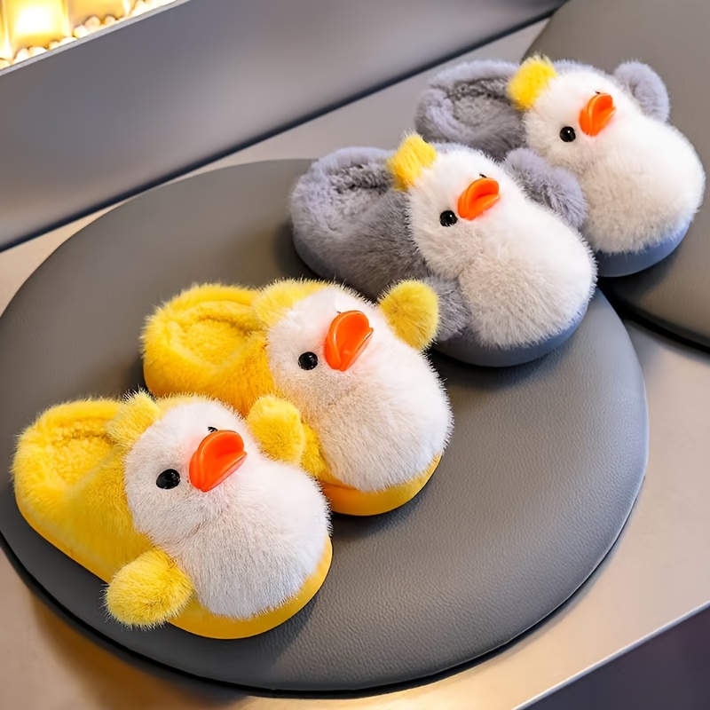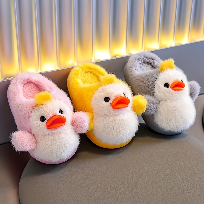 Cute Duck Slippers – Winter Warm Soft Plush-like Indoor/Outdoor House with Rubber Sole, Low-Cut Duckling Booties for & (Pink, Grey, Yellow)