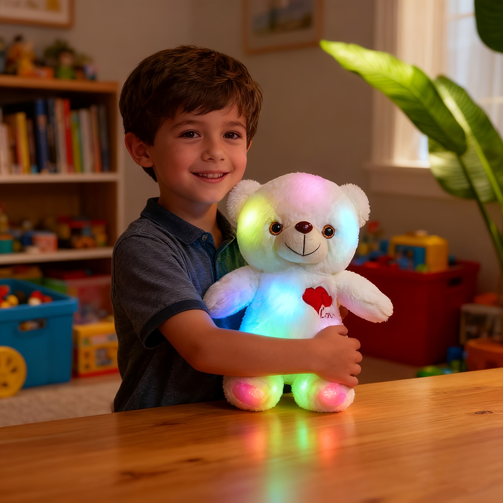 AKKUN Gloeiende LED Knuffelbeer met Hart & Roos