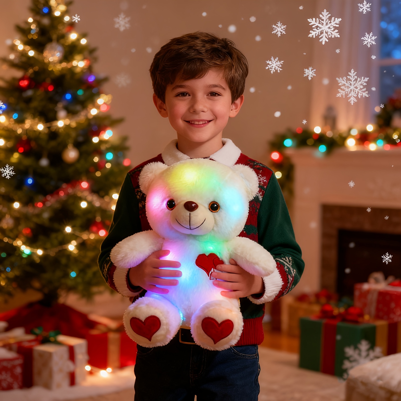 – Zachte Pluche Dier, Lichtgevende Buik en Gezicht, Wit/Rode Kleuropties, Expressieve Ogen En Harten Uitsnijdingen – Perfect Cadeau voor Valentijnsdag, Verjaardagen, Jubilea, Kinderen & Volwassenen – Romantische Love Bear Met Warme Ledverlichting, Plusstof En Vormige Accessoires Vir Cozy Comfort, Knuffeldieren