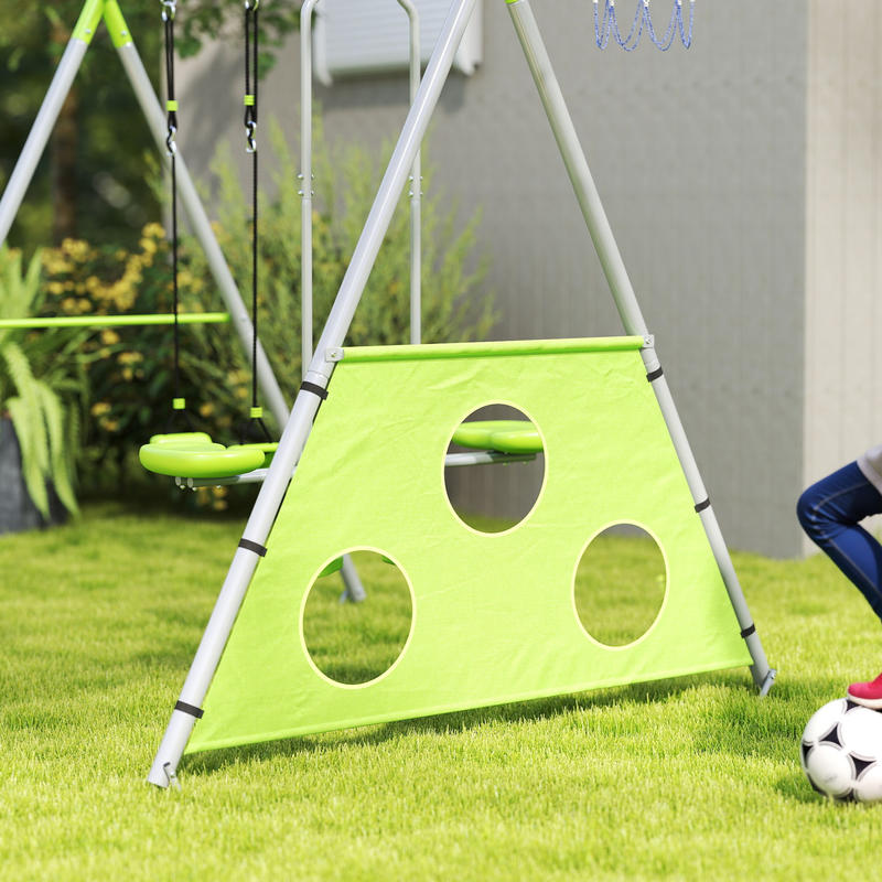 Verstelbare Buitenspeelschommel – Stevig Stalen Frame met Groene & Limoengroene Schommels, Kettingen en Rugleuning