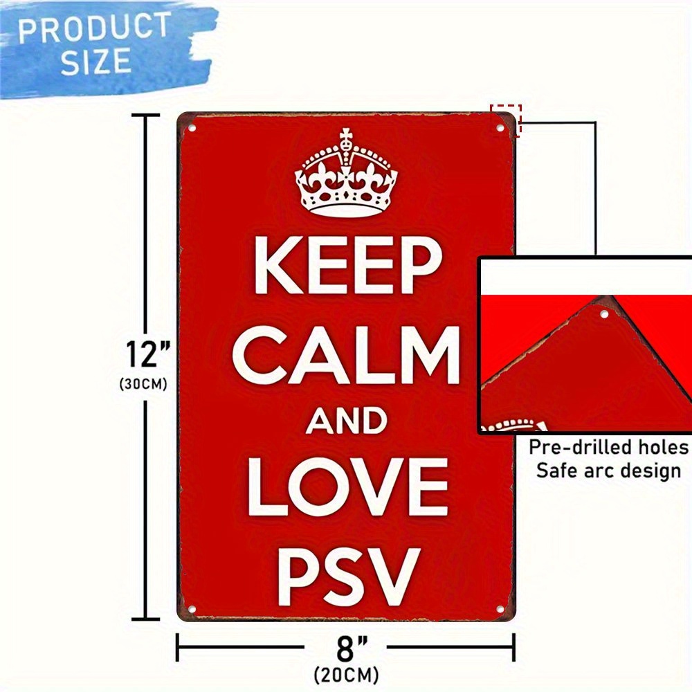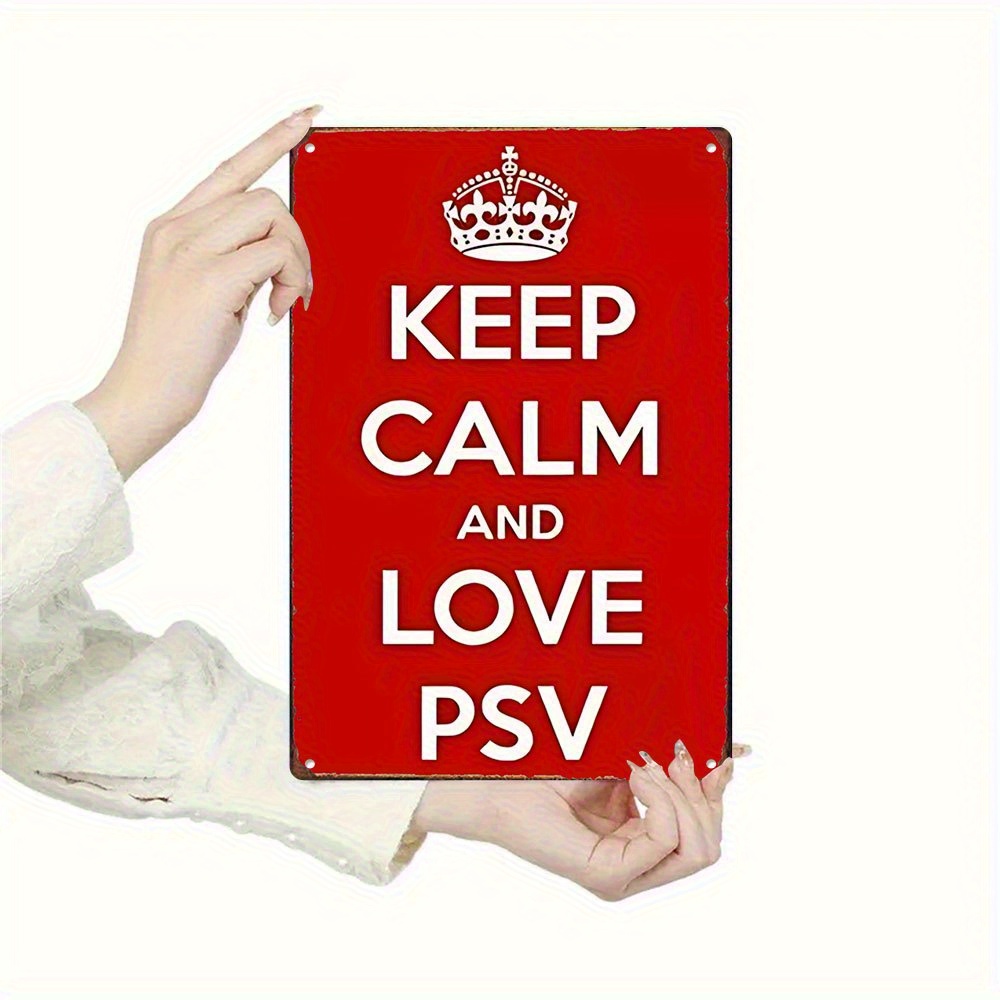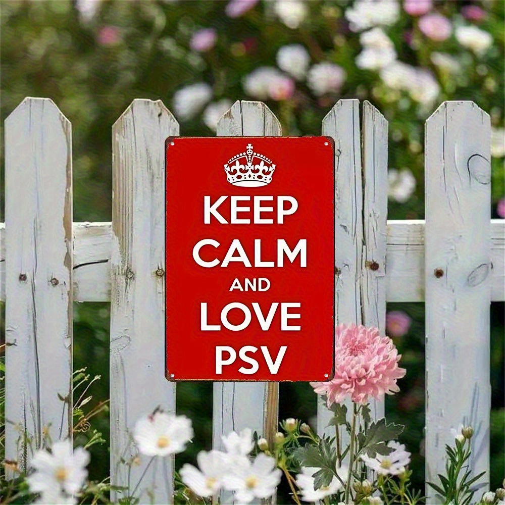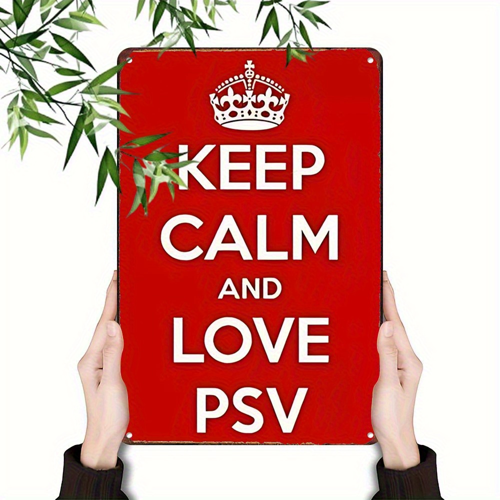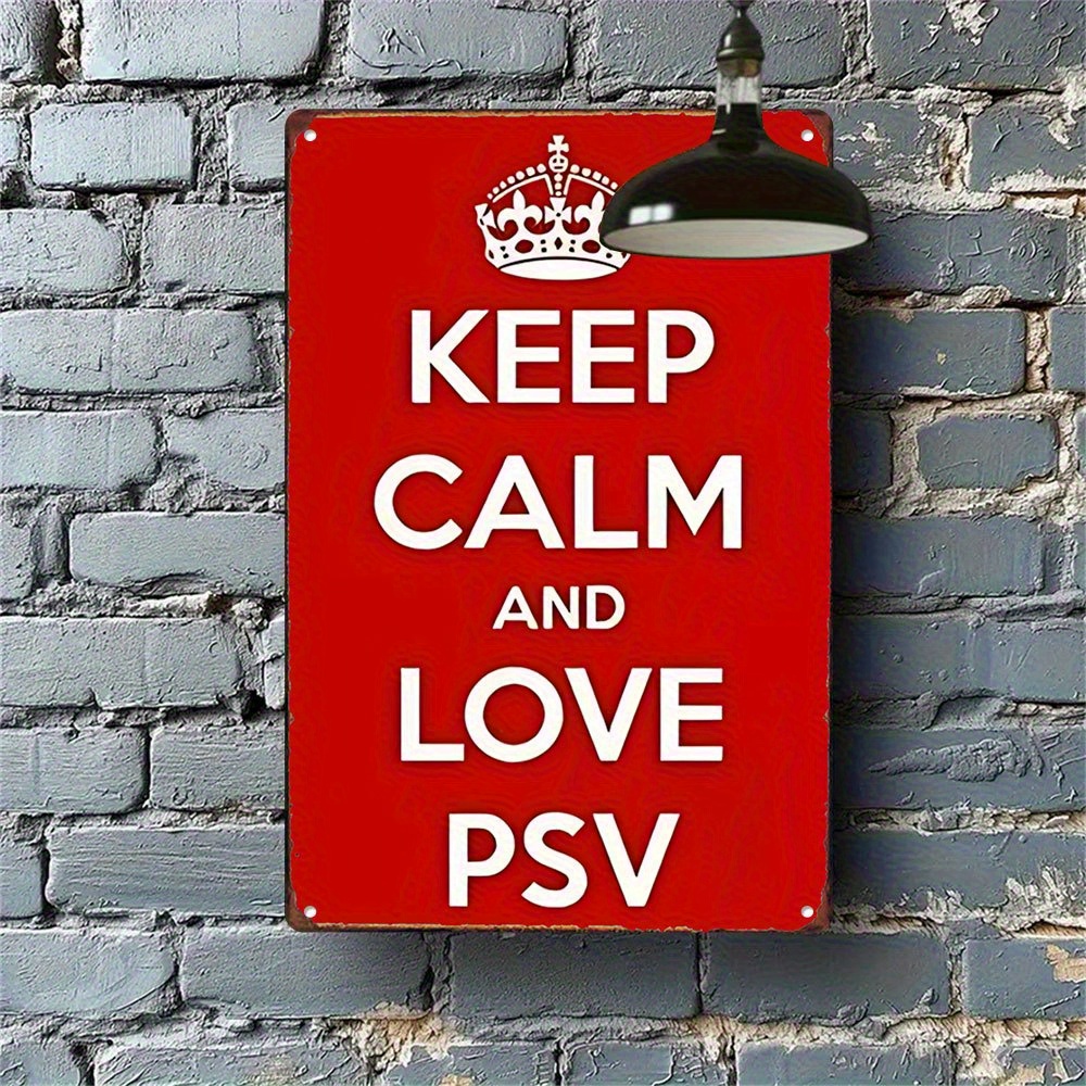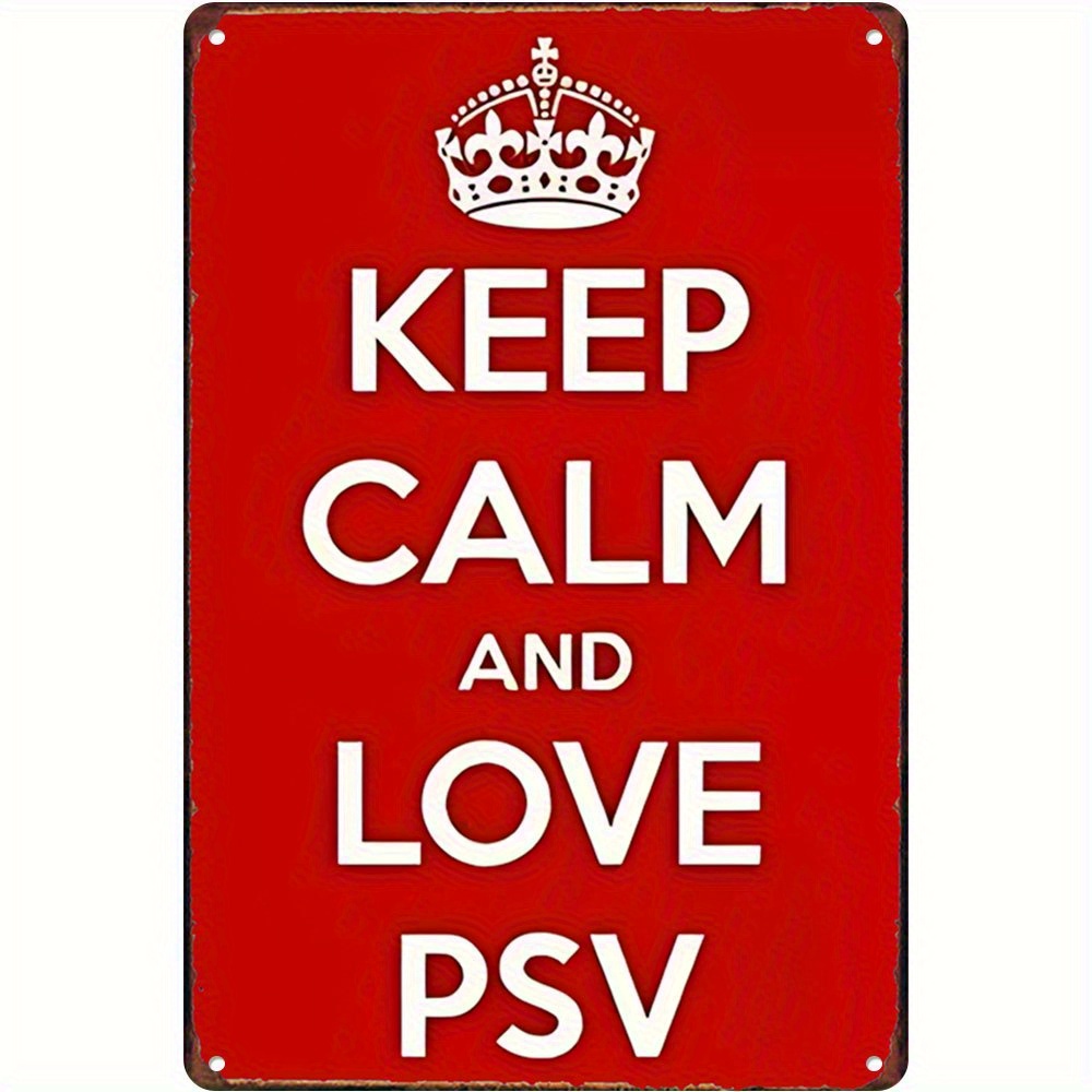 Rood & Wit Verweerd “Keep Calm and Love” PSVV Decor voor Man Cave, Bar, Garage, Tuin – Inspirerend Fan Cadeau, Vintage Esthetiek 2D Plat Ontwerp, Metaal Kunstwanddecoratie, Garagedecoraties, Dikke Contrast Design, Bar Decoraties, Voor Bar Eigenaren, 2D Plat